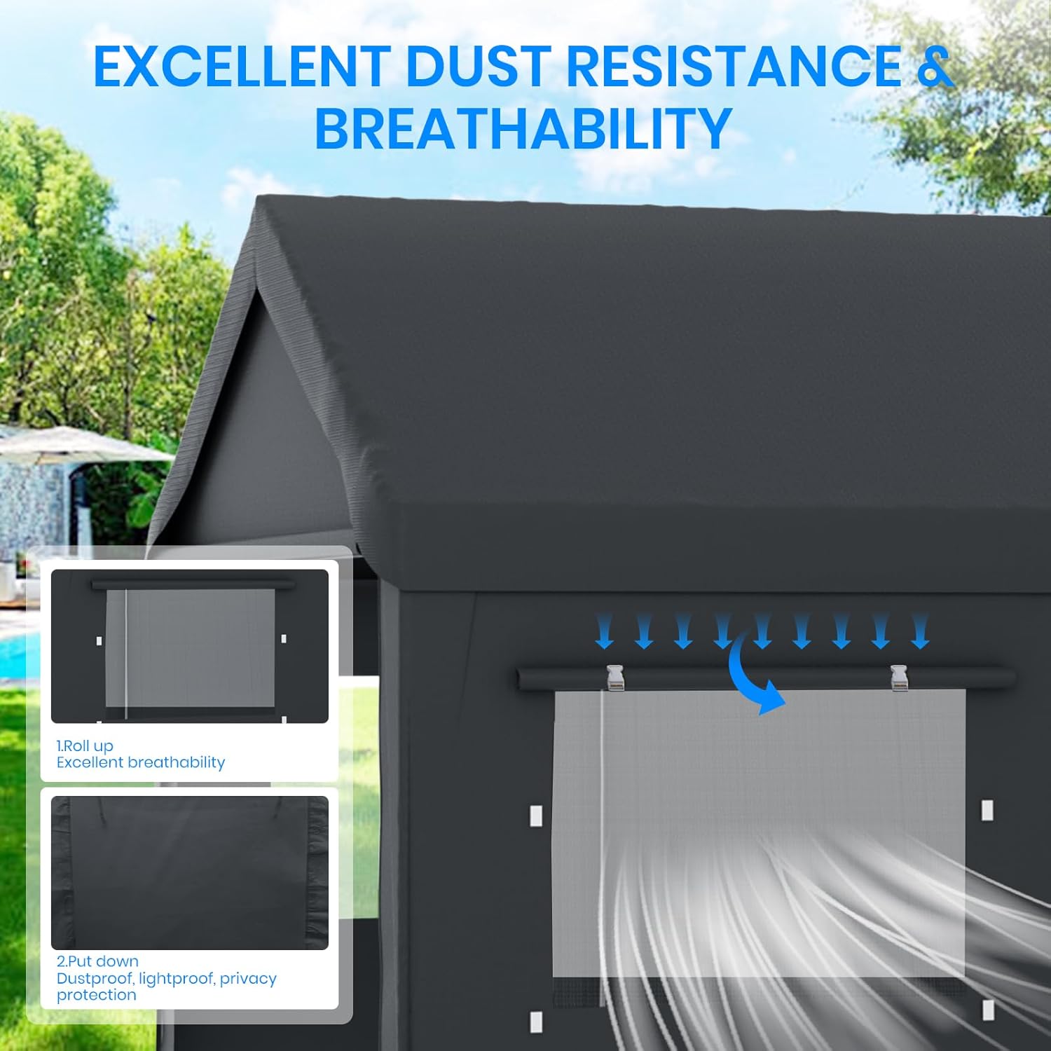 - Heavy Duty & Durable Construction:This 10x20 FT portable garage carport features a robust steel frame and a heavy-duty waterproof canopy, ensuring reliable protection for your vehicles, boats, and RVs. The high-quality materials are designed to withstand harsh weather conditions, including UV rays, rain, and wind.