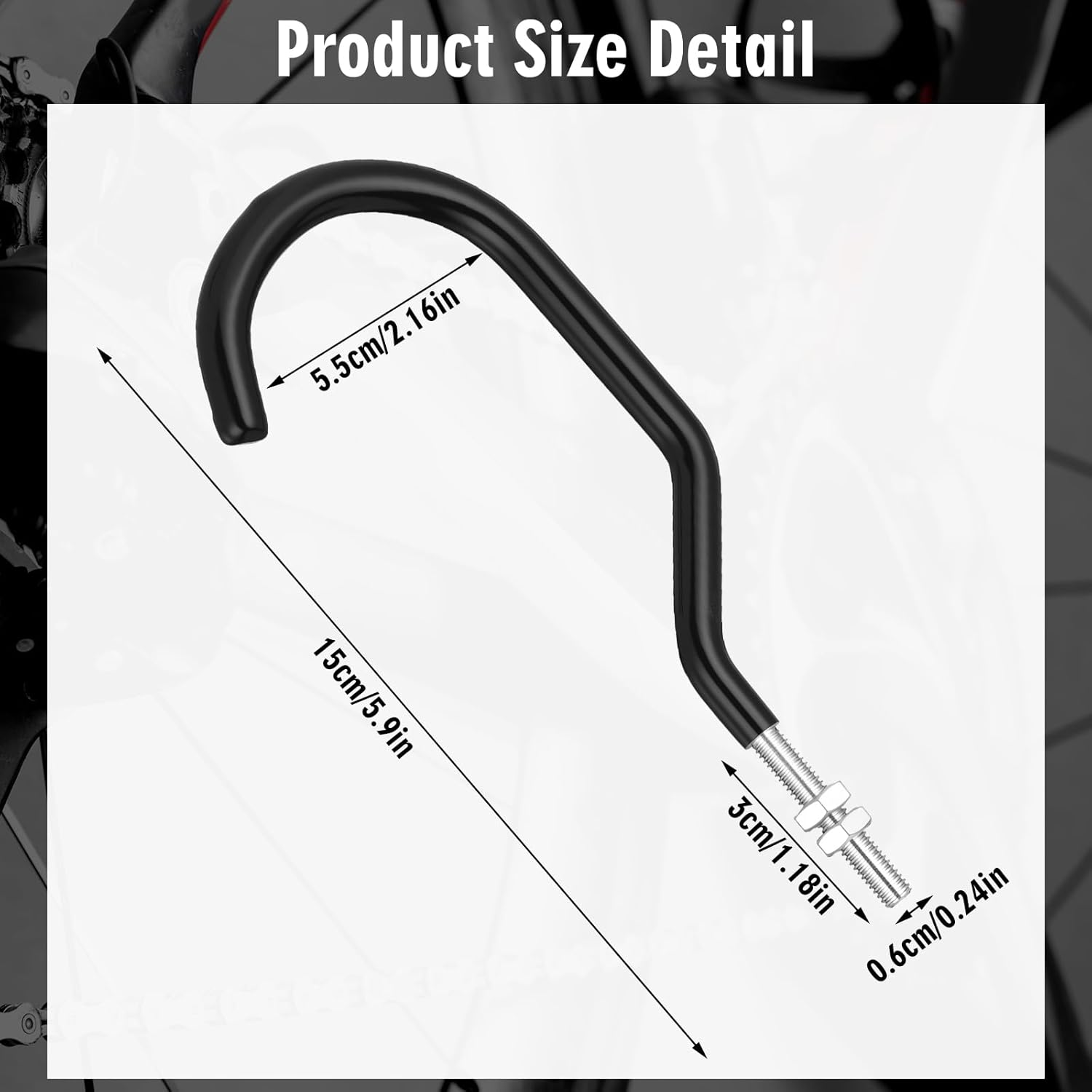 - Built to Last: crafted from robust 9 mm steel rod, these 8 pack bike hooks offer unmatched strength and durability; The inner width of the bend is about 2.17 inches; Designed to support bicycles of various sizes and weights, they're ideal for both home garages and commercial storage