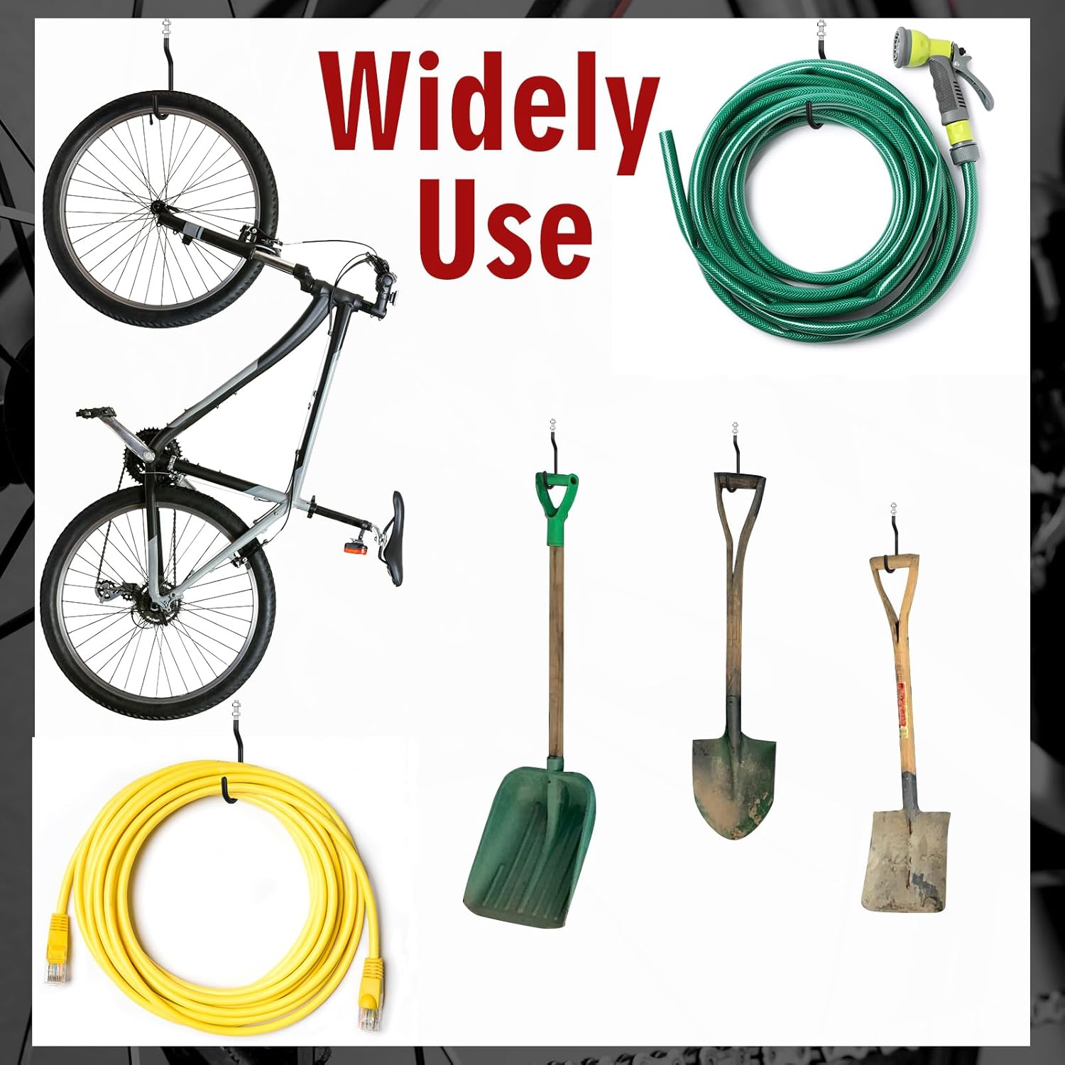 - Maximize Your Space: hang your bikes vertically or horizontally with these versatile hooks, optimizing storage space in garages, workshops, or retail environments; Keep your area clutter free and easily accessible