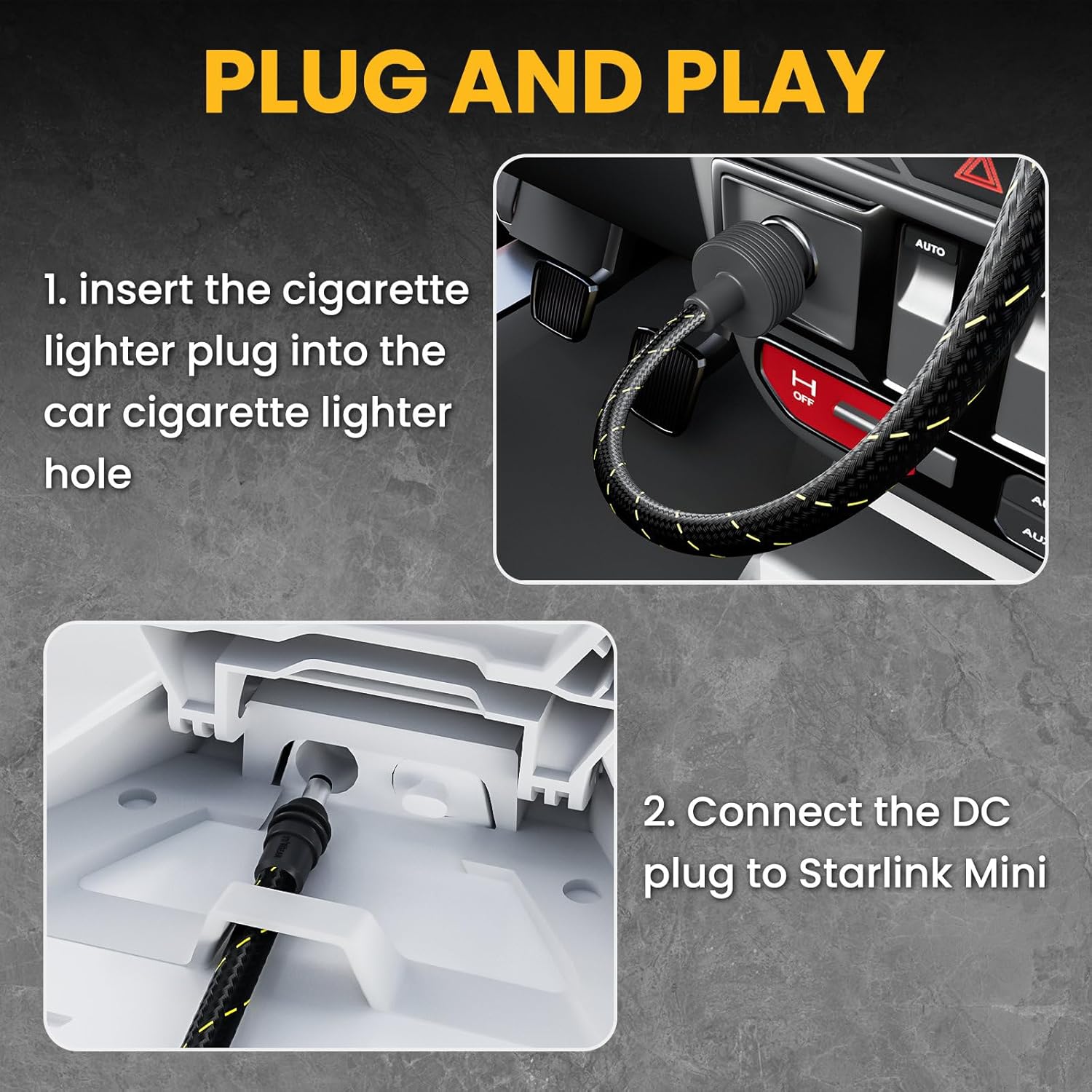 - Oustanding Starlink Mini Accessories: Plug this starlink mini 12v adapter to both the cigarette lighter socket and starlink mini dish, enjoy seamless internet access, enhancing convenience and efficiency from this starlink mini cable.