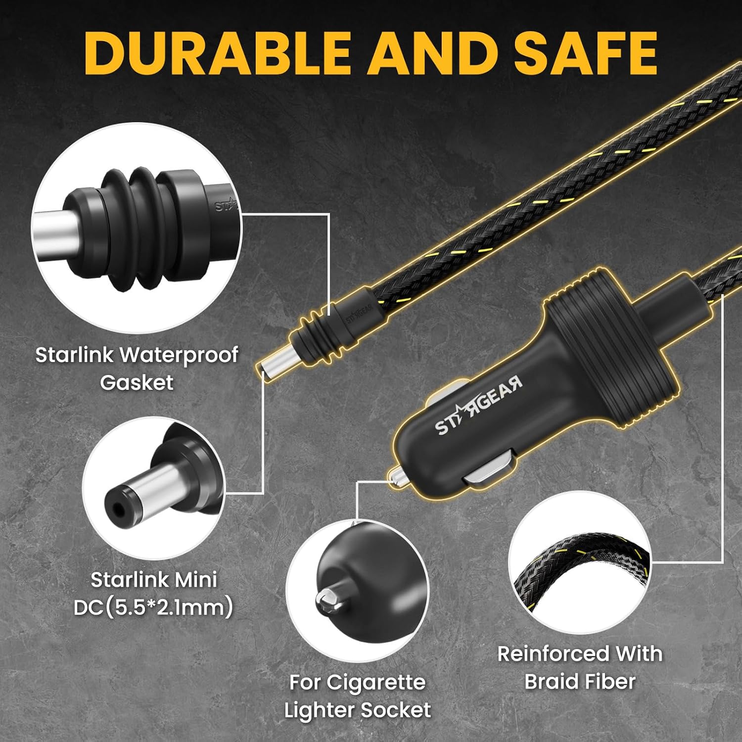 - Wide and Portable Application: Stargear 12v starlink mini car adapter for Starlink mini is equipped with high-quality 16AWG wiring for consistent performance. Designed for 12V-48V cigarette lighter sockets, versatile for rv, car, suv, truck etc.