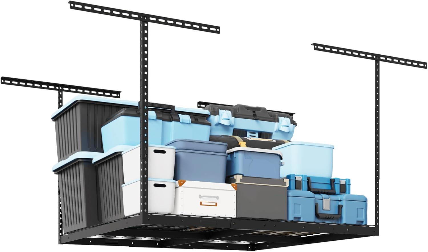- 550 lbs Tested, 275 lbs Rated: Our overhead garage storage rack undergoes rigorous double load testing (550 lbs) to ensure unmatched safety and durability, supporting up to 275 lbs for your tools and equipment.