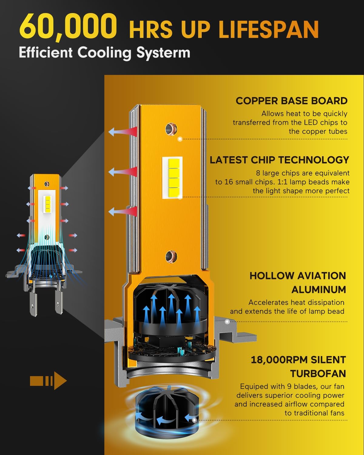 - Brightness : 60000 Lumen