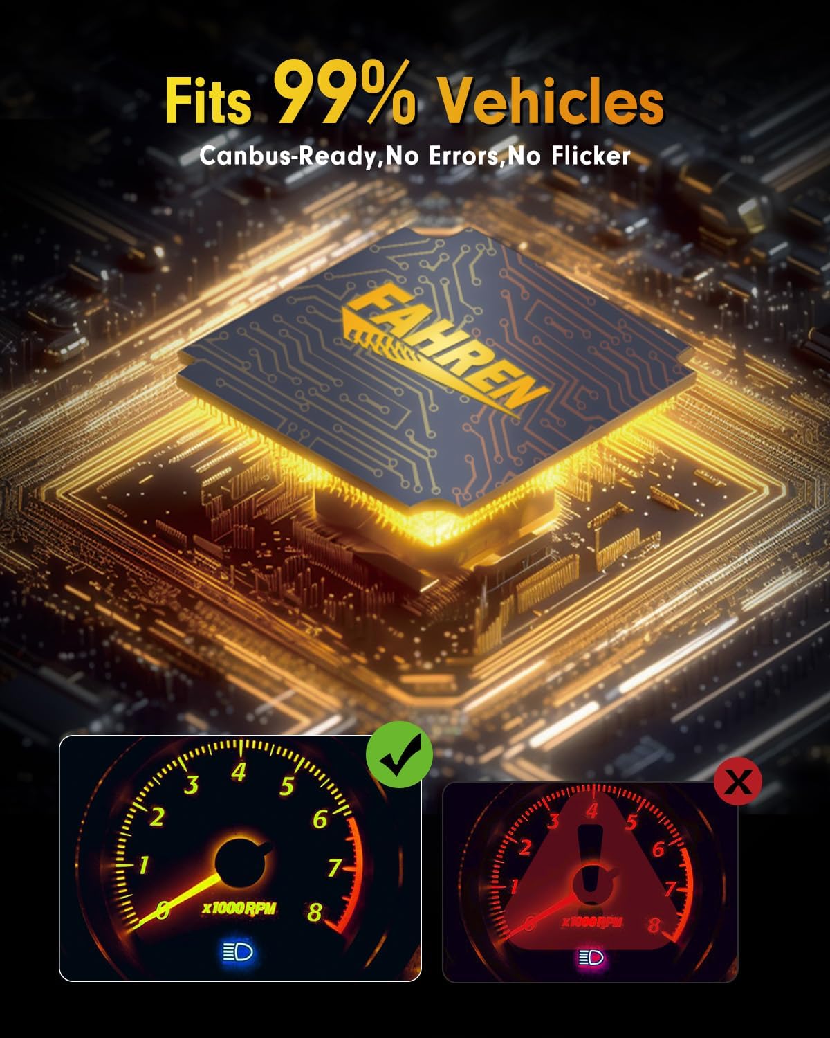 - 【IP68 Waterproof & Durable Build】Engineered for all-weather performance, the FAHREN H7 bulbs are IP68 rated and built with aviation-grade aluminum for superior heat dissipation and long-term durability. Perfect for rainy, snowy, or dusty environments.