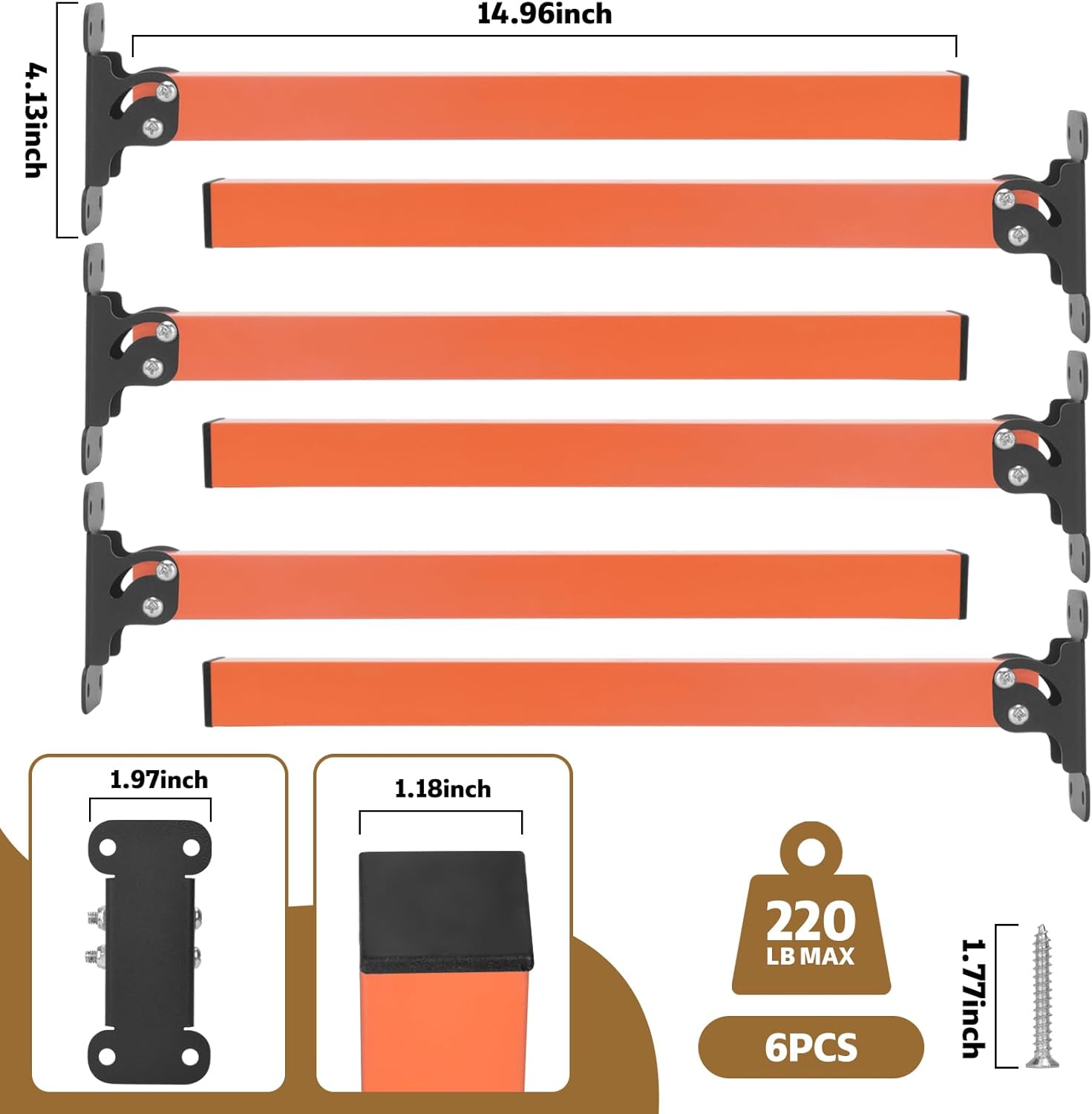 lumber storage rack, Heavy Duty Metal Lumber Storage Rack with Multi Angle Adjustment and 3-Level Wall Mount for Garage Shop Indoor Outdoor, Orange (2 PACK)