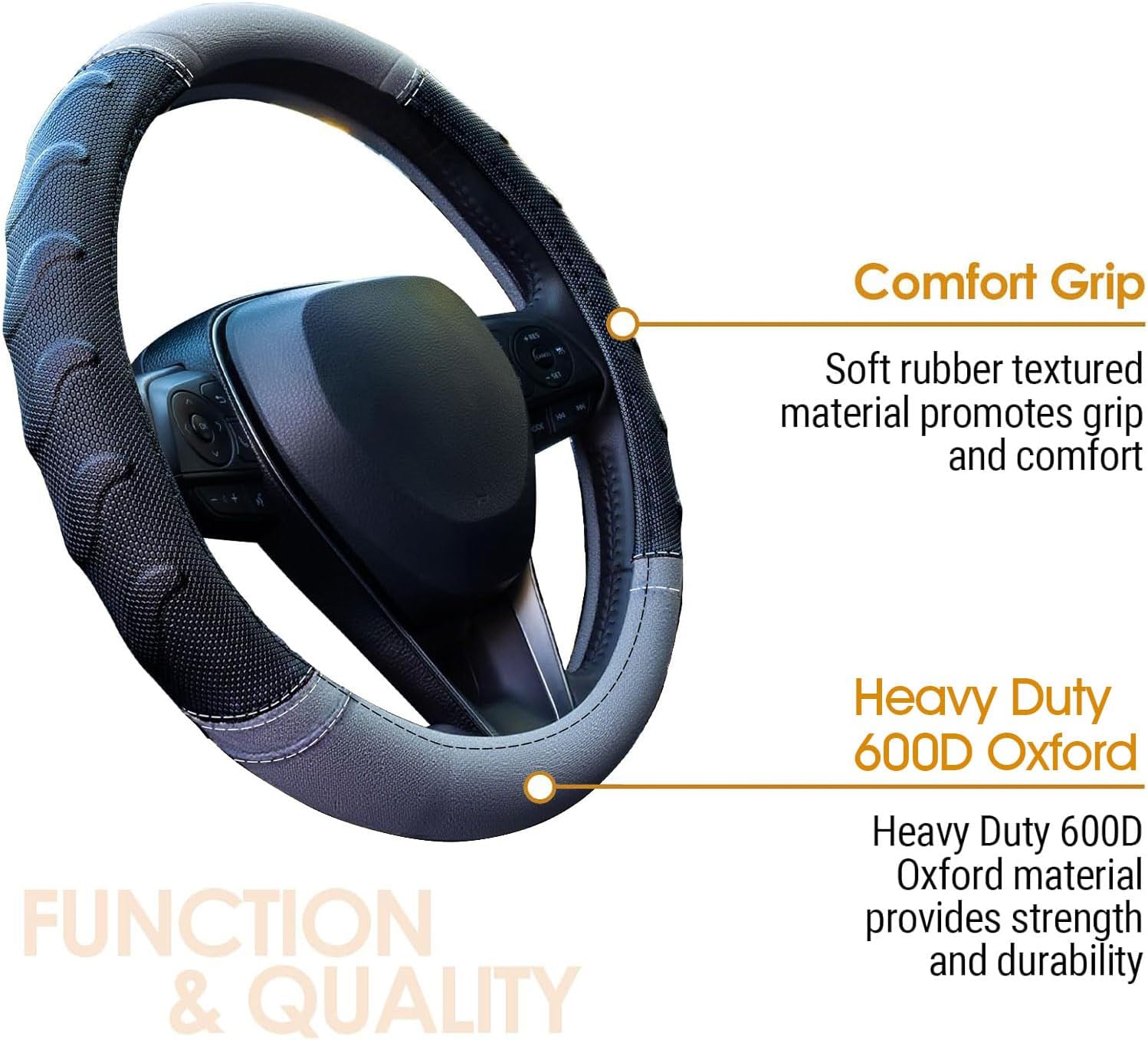 - The steering wheel is made from premium faux leather for long lasting finish; We use high quality TPR inner core sleeve that provides structural strength and ensures an anti-skid grip