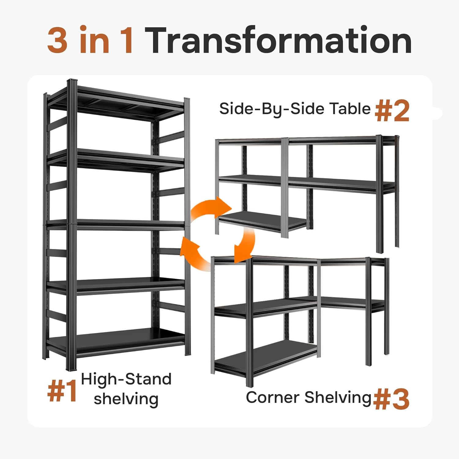 - 🔄 VERSATILE 2-IN-1 MODULAR DESIGN – Get two units for the price of one! Use it as a single, towering 71" tall shelving unit to maximize vertical space. Or, in just a few seconds, split it into two independent, workbench-height 35.5" racks. This incredible flexibility makes it the ultimate solution for any space: your garage, warehouse, pantry, kitchen, or even as a retail display. It adapts to your needs, not the other way around.