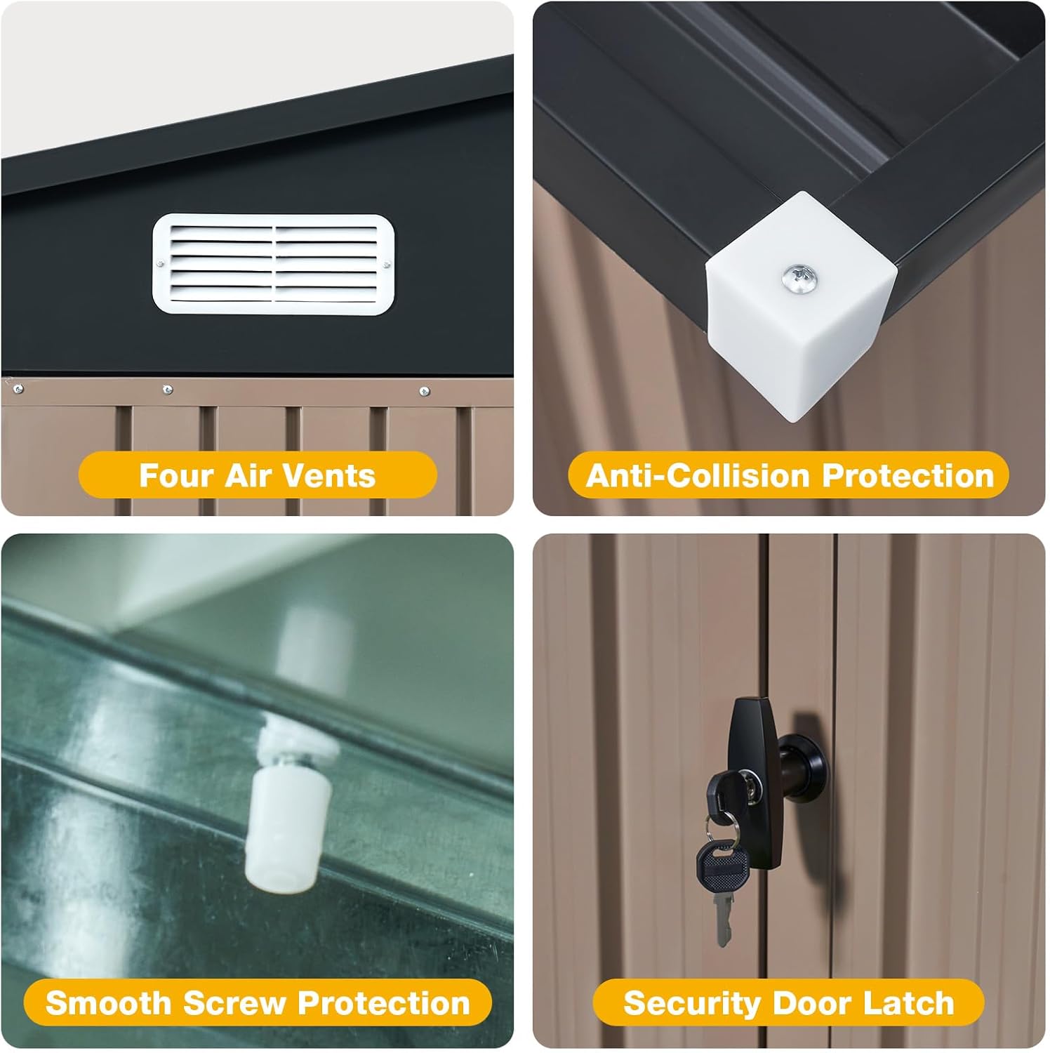 - Lockable Double Doors & Sloped Roof Design: Secure your valuables with padlock-ready double doors (lock not included), while the sloped roof prevents rainwater pooling and increases snow load capacity up to 6 inches. Built-in ventilation vents reduce condensation, keeping items dry in any season, perfect for use as a secure outdoor storage cabinet or garden shed.