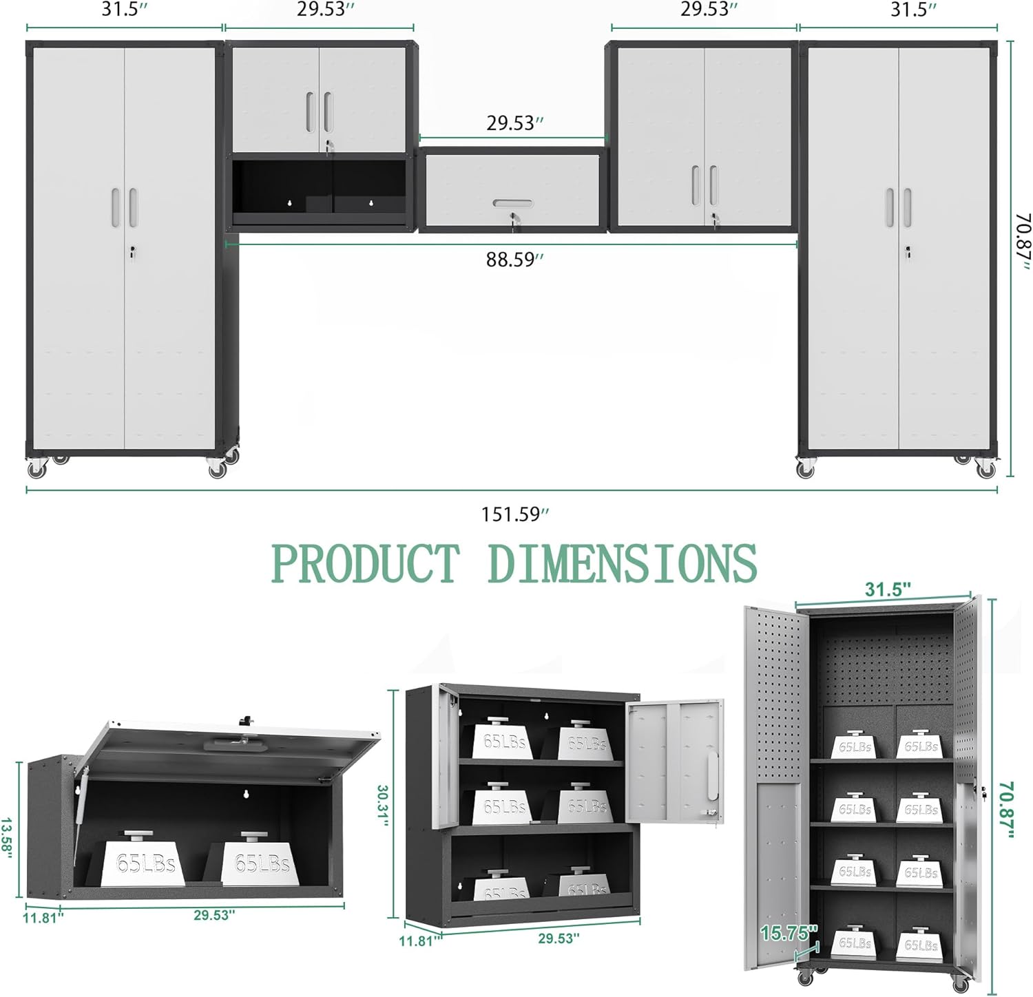 Metal Tool Cabinet,Garage Storage Cabinet System,Wall Cabinet & Locking Rolling Tool Cabinet with Doors and Adjustable Shelves,Steel Tool Cabinets for Home,Office (5 Pcs-StyleA, Black & Grey)