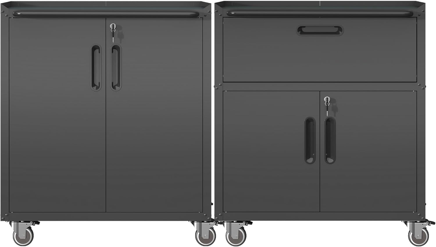 Metal Tool Cabinet,Garage Storage Cabinet System,Wall Cabinet & Locking Rolling Tool Cabinet with Doors and Adjustable Shelves,Steel Tool Cabinets for Home,Office (2 Pcs-StyleB, Black)