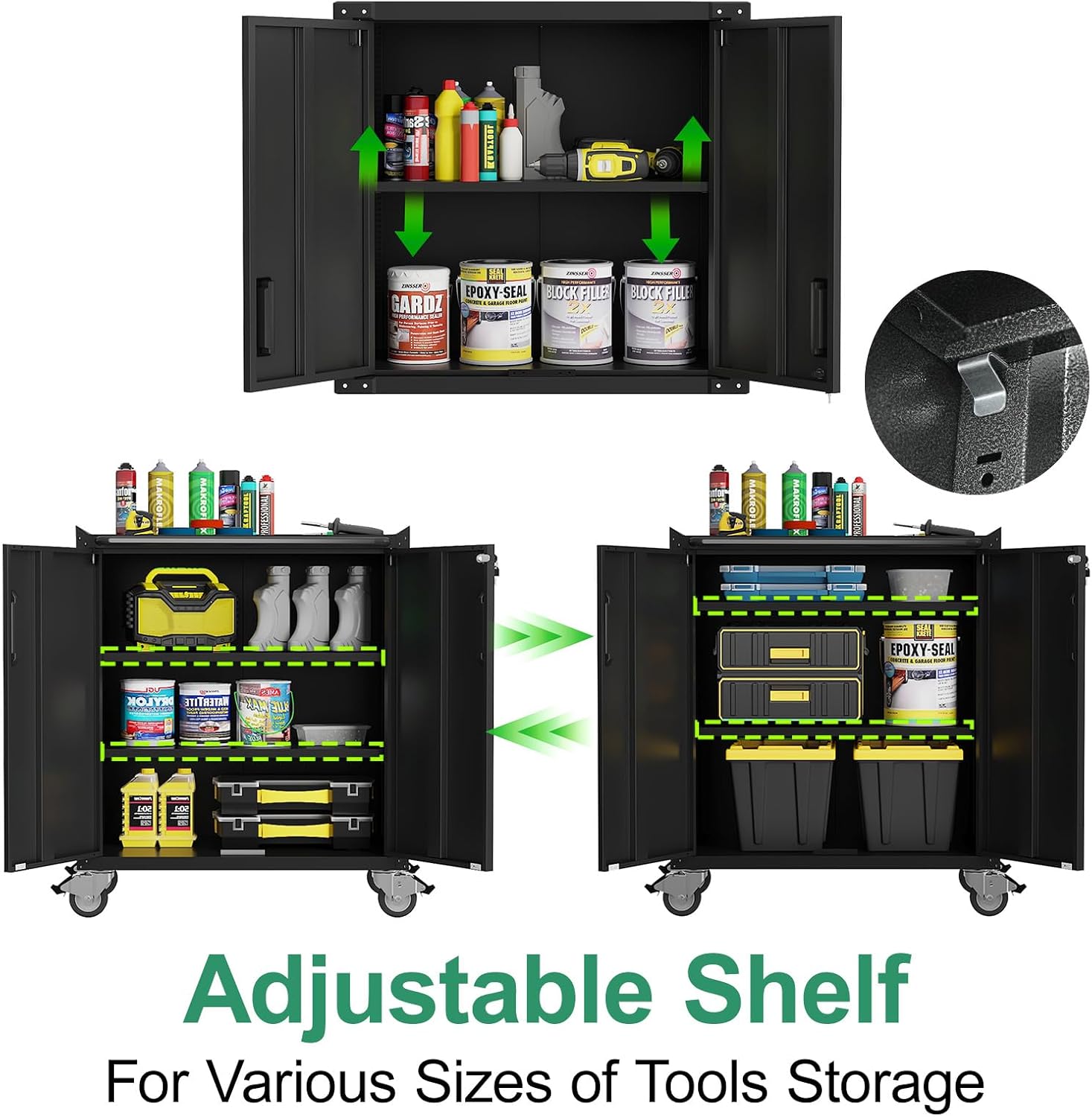 Metal Tool Cabinet,Garage Storage Cabinet System,Wall Cabinet & Locking Rolling Tool Cabinet with Doors and Adjustable Shelves,Steel Tool Cabinets for Home,Office (5 Pcs-StyleC, Black)