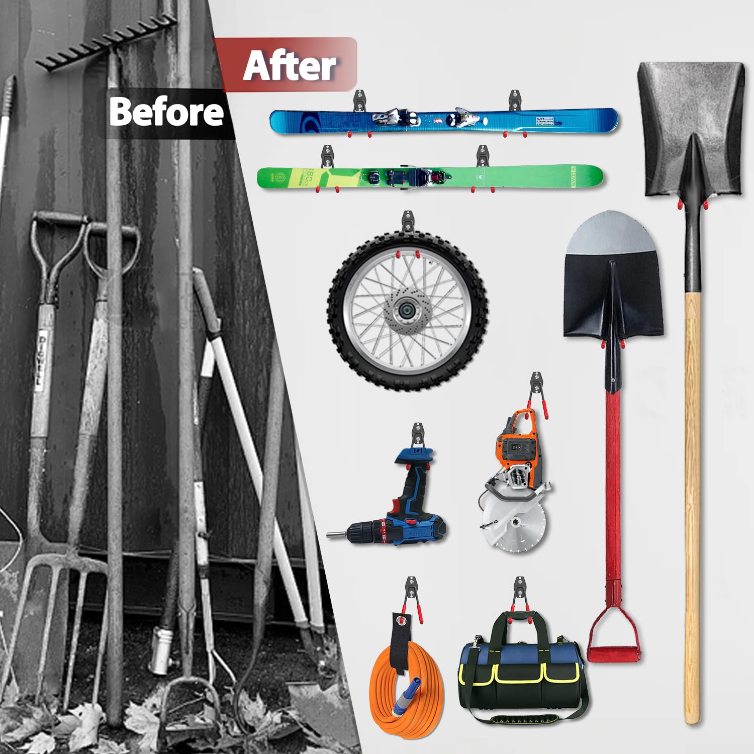 - Multi-Use Utility Hooks: The storage hooks for hanging in garage are ideal for garage, garden, shop, basement, warehouse, shed, or man cave, etc occasions. Our garage hooks for hanging can provide a great solution to use garage storage space more efficiently, the garage organization can hang various items like garden tools,ladders, bikes, strollers, chairs and so much more