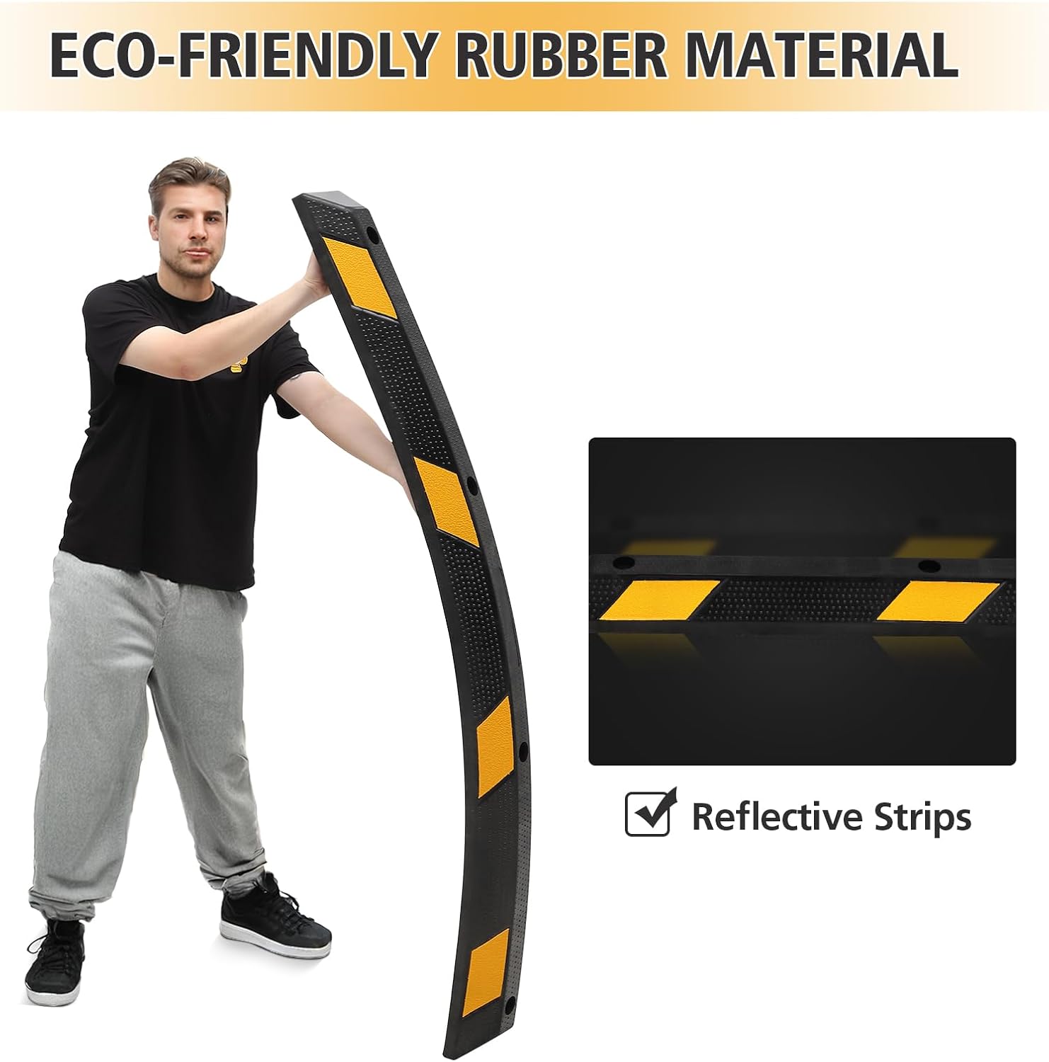 Heavy-Duty Rubber Parking Curb1 with 8 Reflective Strips - 72.8" Extra Wide Vehicle Stopper, 55,000 lb Capacity for Driveways, Garages & Commercial Lots (1 Pack)