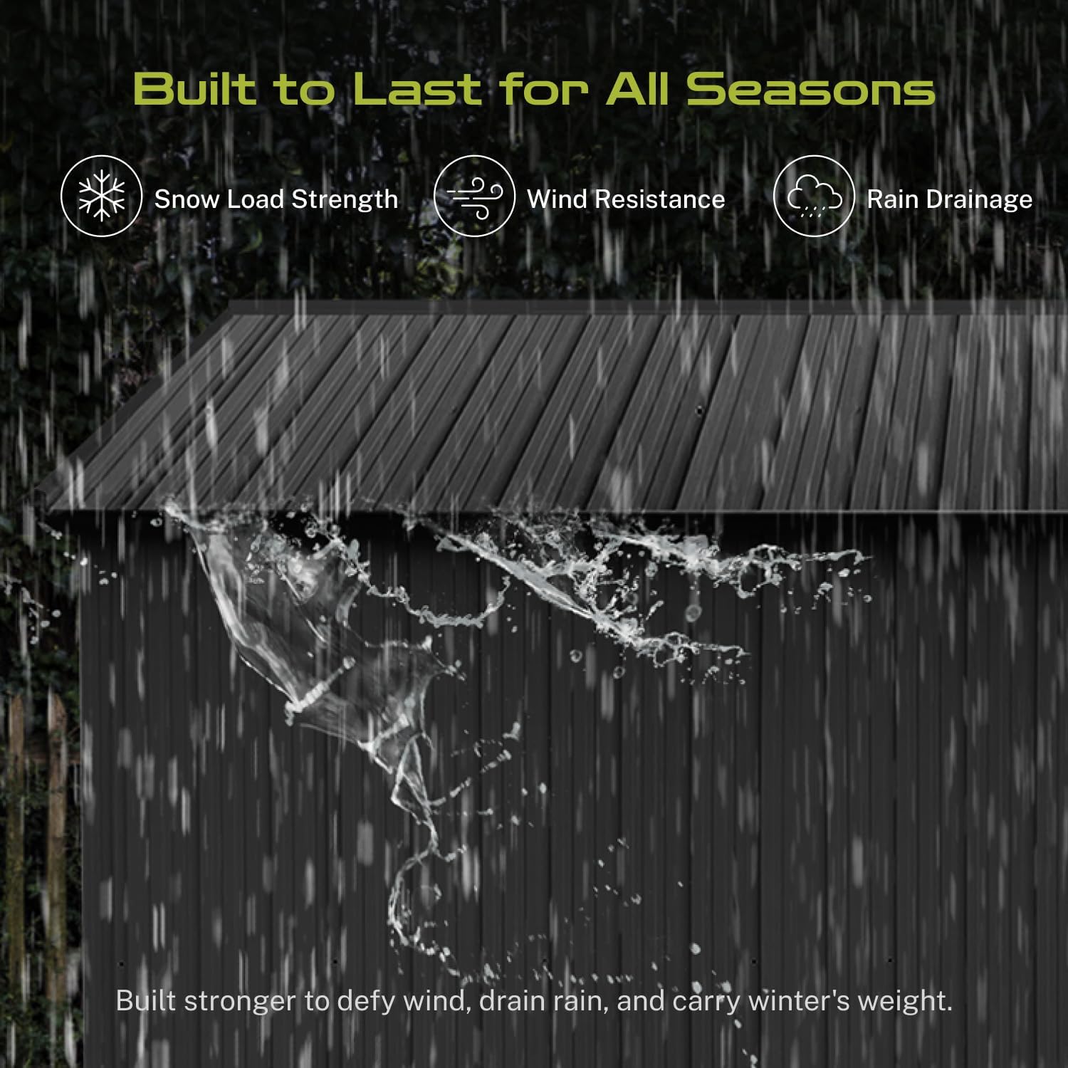 - ☔ [Sloped Roof for Superior Weather Protection] Designed for real-world conditions, the efficient sloped roof system guarantees optimal rainwater drainage, preventing damaging pooling and leaks. This key feature in our storage buildings and sheds clearance design minimizes maintenance and ensures your tools, equipment, and belongings stay consistently dry inside