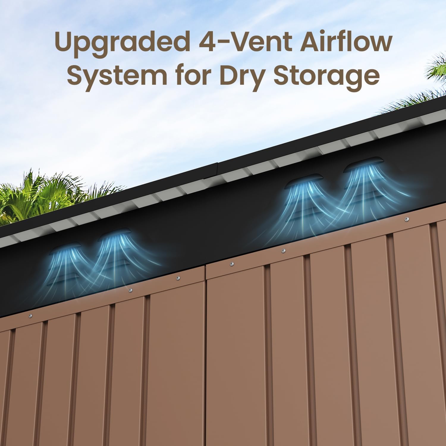- 【Multifunctional Outdoor Storage Shed】This metal shed is more than just storage—it’s a versatile addition to your outdoor space. Use it to store gardening tools, power equipment, bikes, or even as a pet shelter that stays cool and comfortable in warm weather. It can also serve as a tidy garbage station to keep waste out of sight.