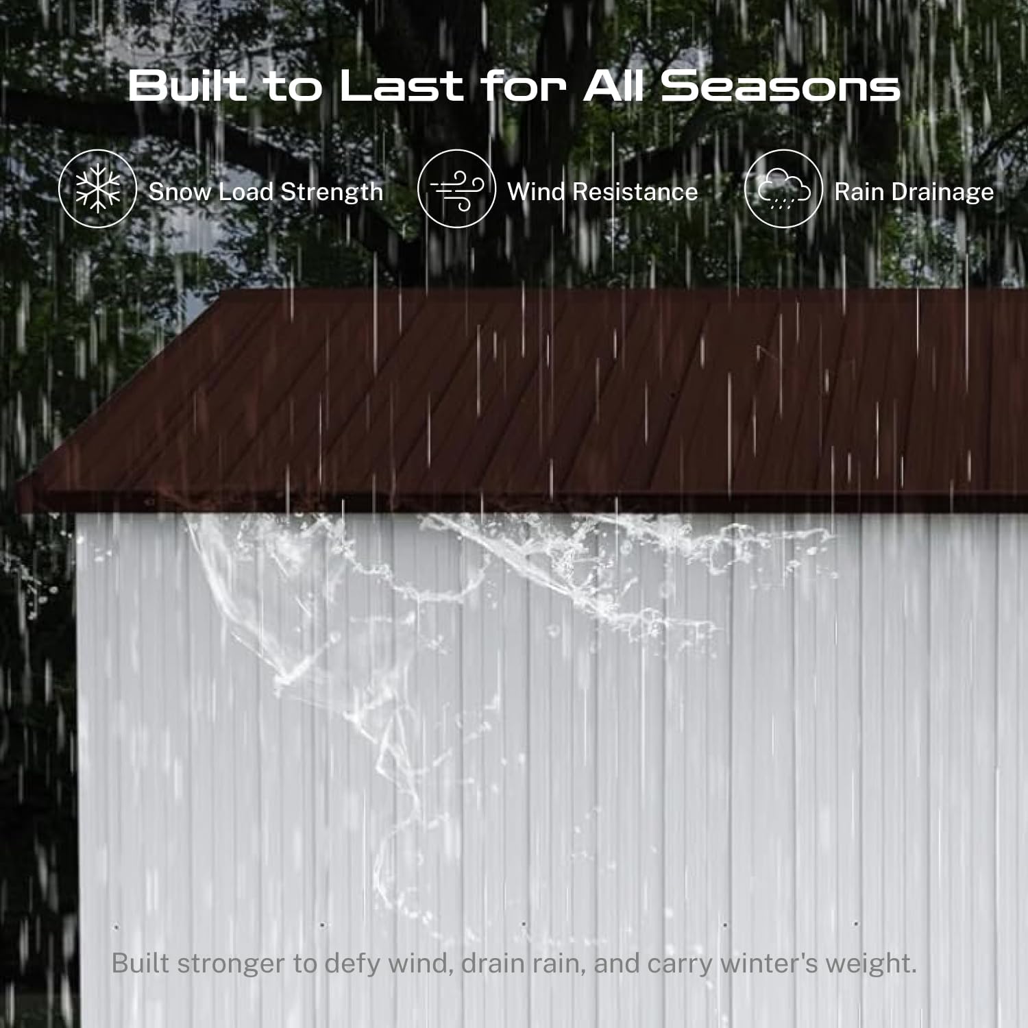 - ☔ [Sloped Roof for Superior Weather Protection] Designed for real-world conditions, the efficient sloped roof system guarantees optimal rainwater drainage, preventing damaging pooling and leaks. This key feature in our storage buildings and sheds clearance design minimizes maintenance and ensures your tools, equipment, and belongings stay consistently dry inside
