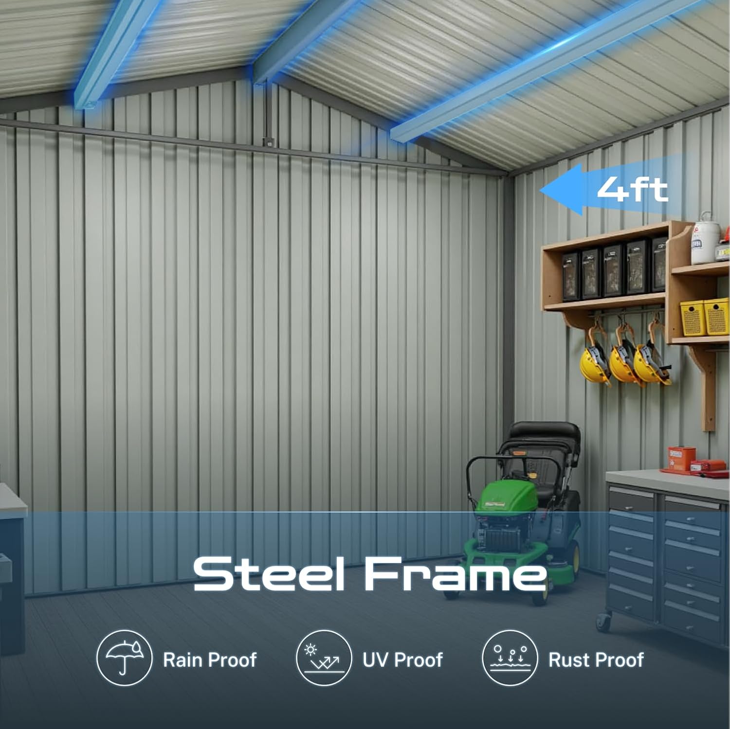 - ☔ [Sloped Roof for Superior Weather Protection] Designed for real-world conditions, the efficient sloped roof system guarantees optimal rainwater drainage, preventing damaging pooling and leaks. This key feature in our storage buildings and sheds clearance design minimizes maintenance and ensures your tools, equipment, and belongings stay consistently dry inside