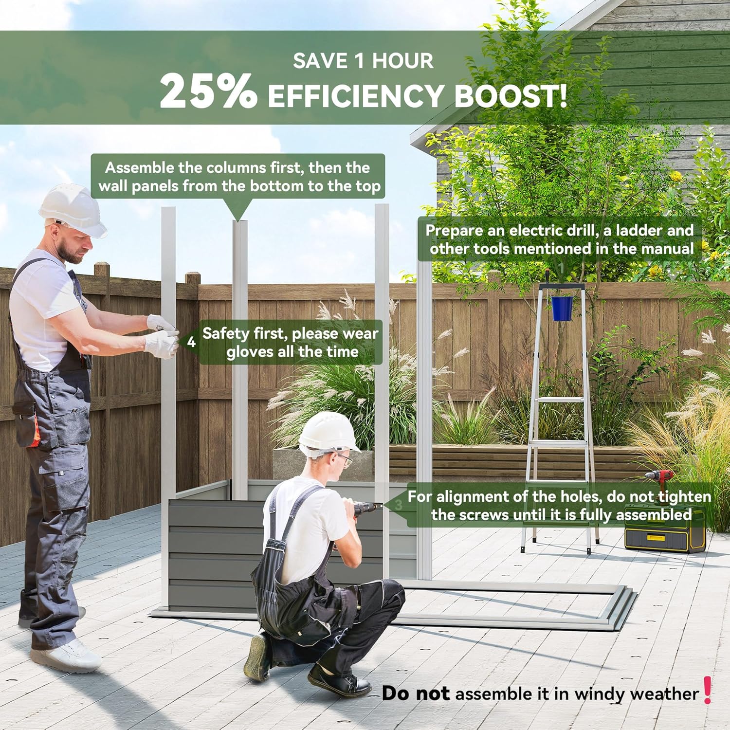 - Save up to ONE Hour: Unlike traditional garden shed with tricky vertical panels, our innovative horizontal wall panels greatly reduce assembly difficulty and increase efficiency by 25%. Spend more time enjoying your garden, not building it