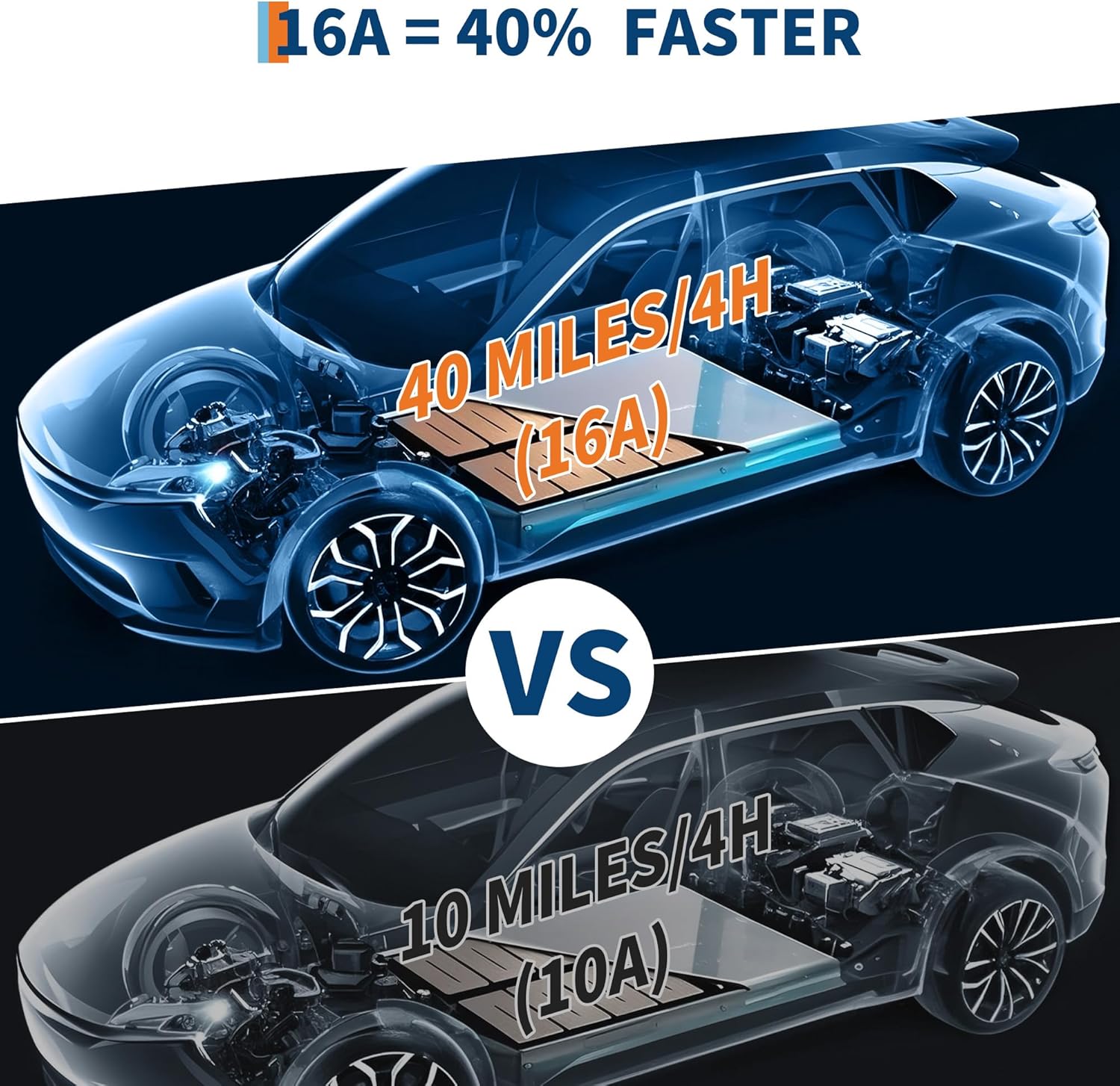 - Dual-Level Fast Charging- The ev charger level 2 supports both Level 1 (120V/NEMA 5-15) and Level 2 (240V/NEMA 6-20) charging. Delivers 16A output for 40% faster charging (40 miles in 4 hours) compared to standard 10A chargers. Industrial-grade plug ensures stable high-power performance.