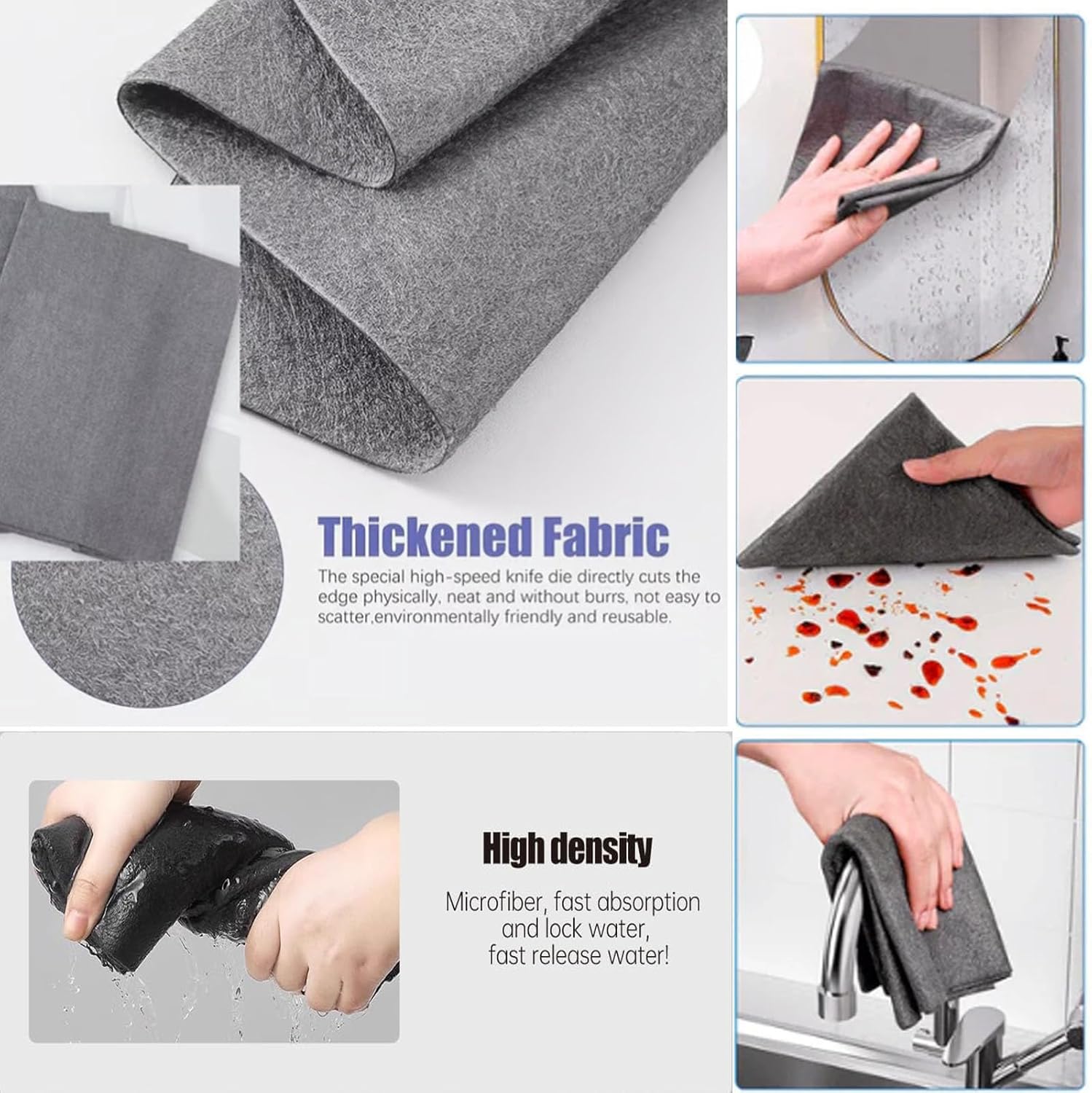 - 【Supercharged Absorption】 Designed to soak up moisture effectively, this Thickened Magic Cleaning Cloth provides a spotless finish on windows and mirrors. No more annoying water trails—just a clean surface with every use. Its absorbency is ideal for kitchens, bathrooms, or cars.