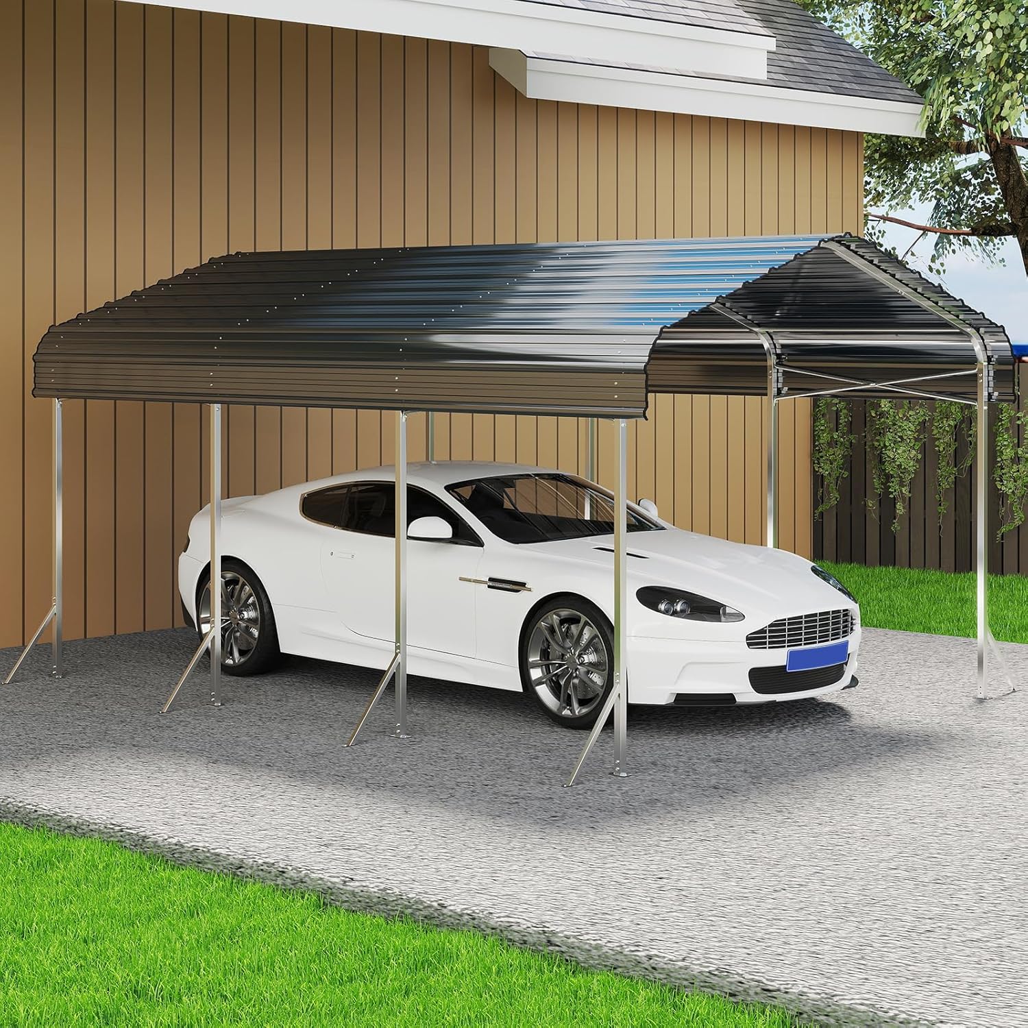 - Heavy-Duty Steel Structure: Made of high-strength steel and coated with anti-rust coating, this carport ensures durability, stability and long-lasting performance, even in harsh outdoor environments