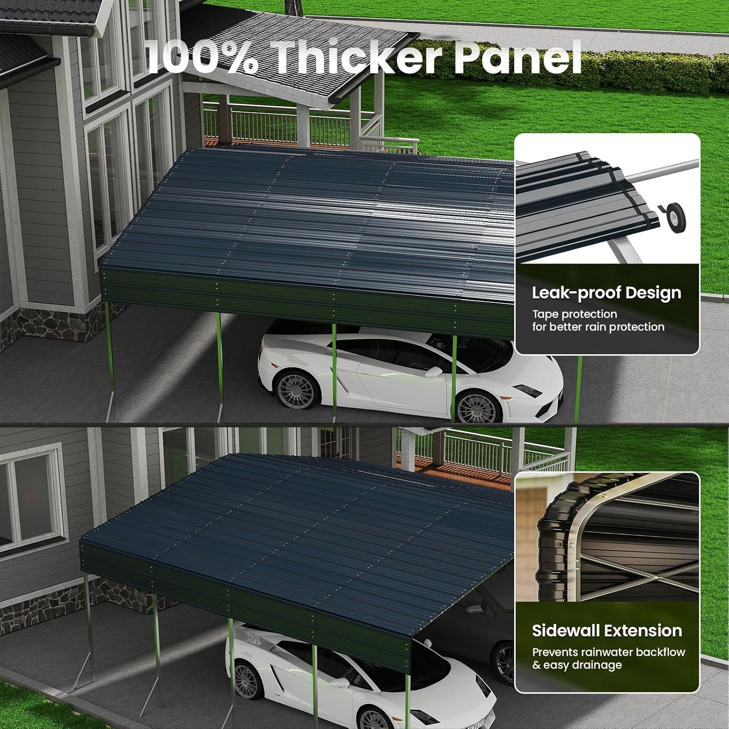 - Heavy-Duty Steel Structure: Made of high-strength steel and coated with anti-rust coating, this carport ensures durability, stability and long-lasting performance, even in harsh outdoor environments