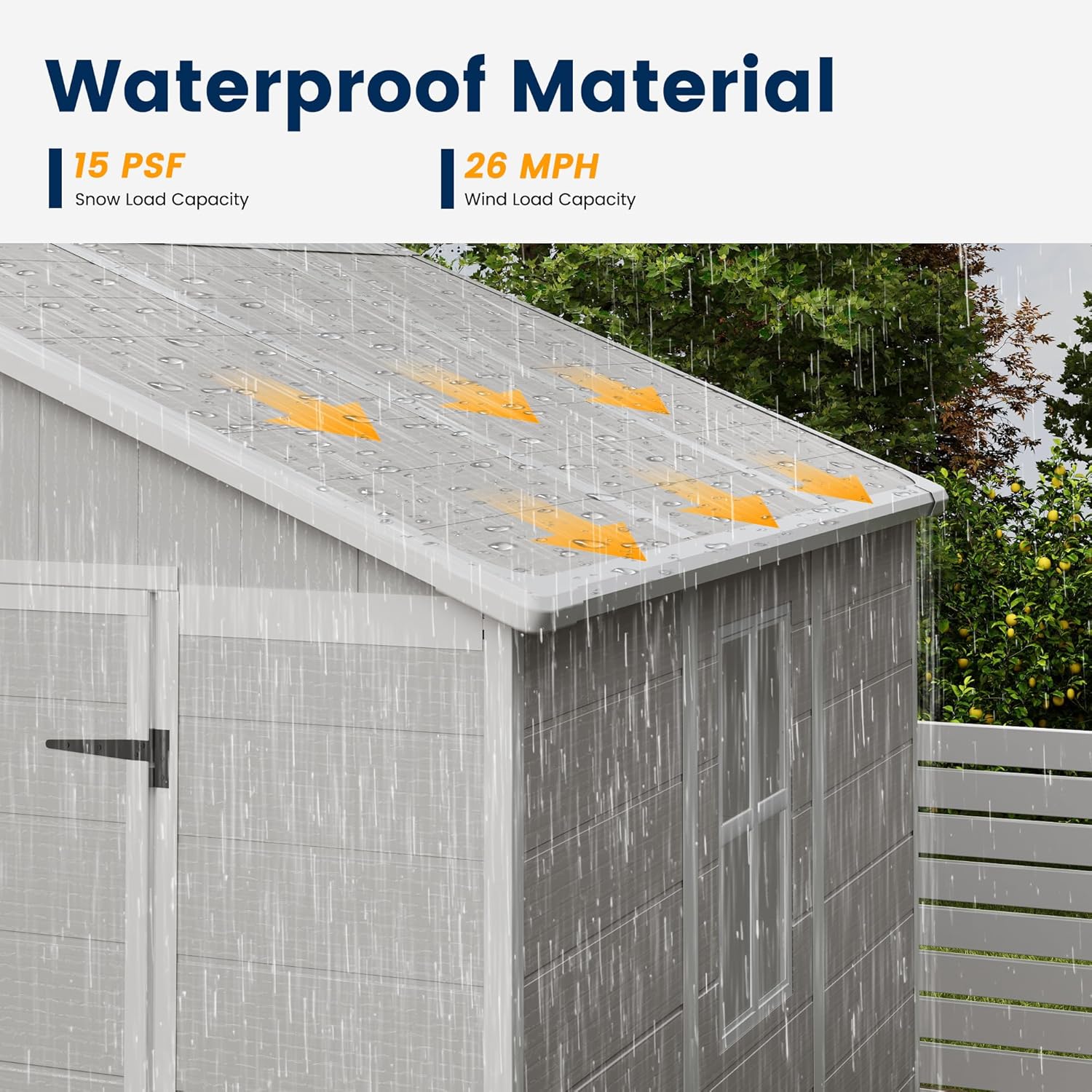 UDPATIO Resin Storage Shed 8 x 6 FT, Outdoor Garden Sheds with Floor Plastic Patio Outdoor Storage Shed with Lockable Door, Sandstone