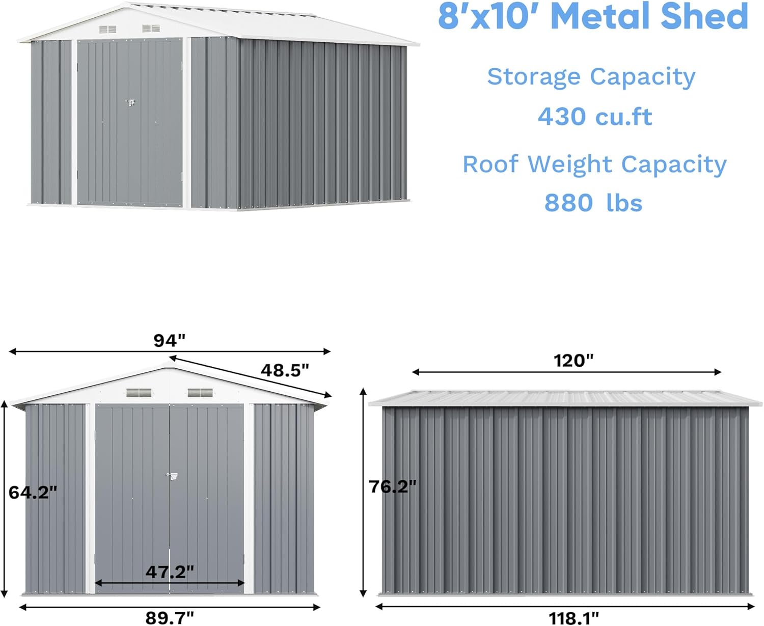 - Robust Steel Construction for Long-Lasting Durability: Built with heavy-duty galvanized steel, this shed resists rust, harsh weather, and wear, offering reliable protection for your tools and equipment year after year.
