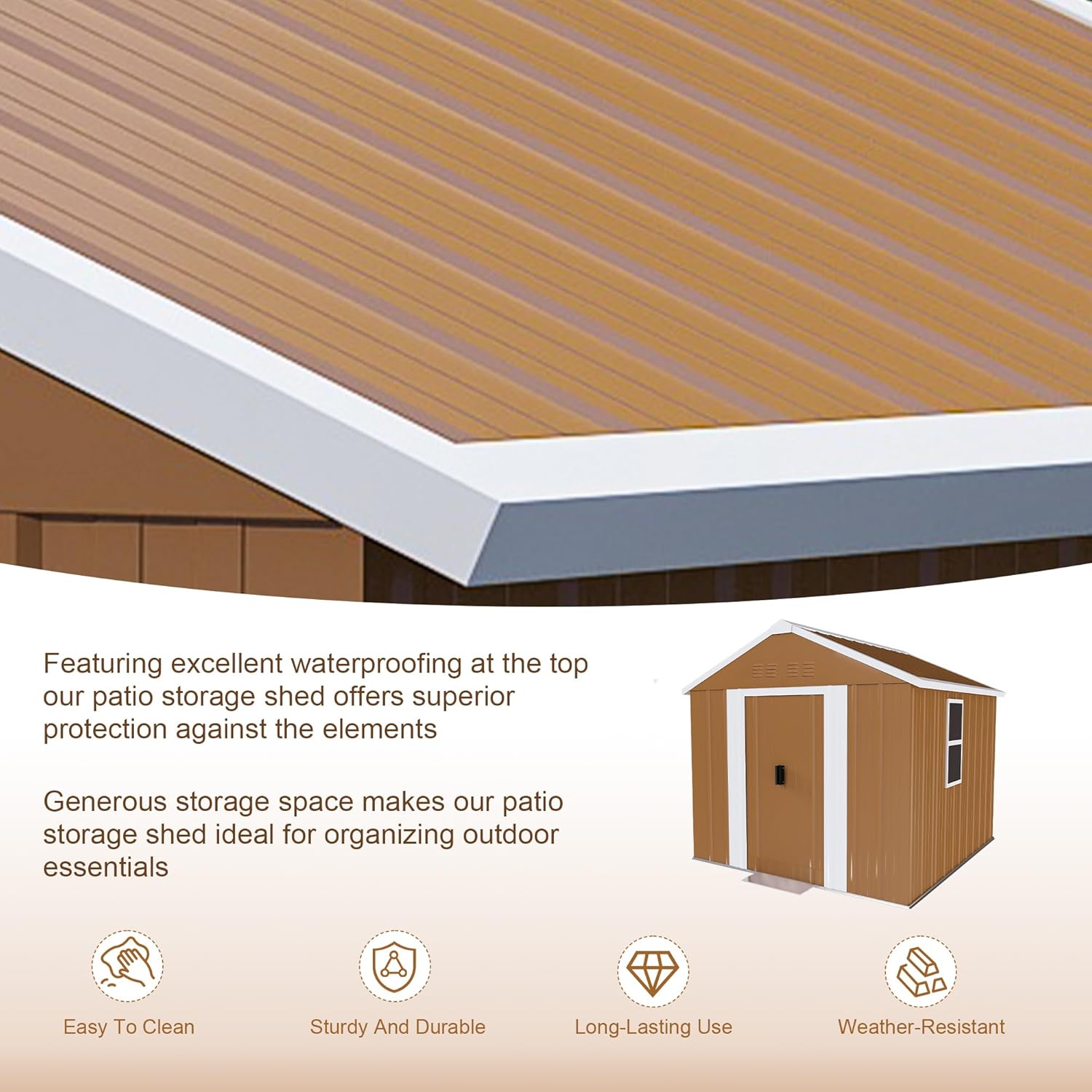 - ☔ [Sloped Roof for Superior Weather Protection] Designed for real-world conditions, the efficient sloped roof system guarantees optimal rainwater drainage, preventing damaging pooling and leaks. This key feature in our storage buildings and sheds clearance design minimizes maintenance and ensures your tools, equipment, and belongings stay consistently dry inside