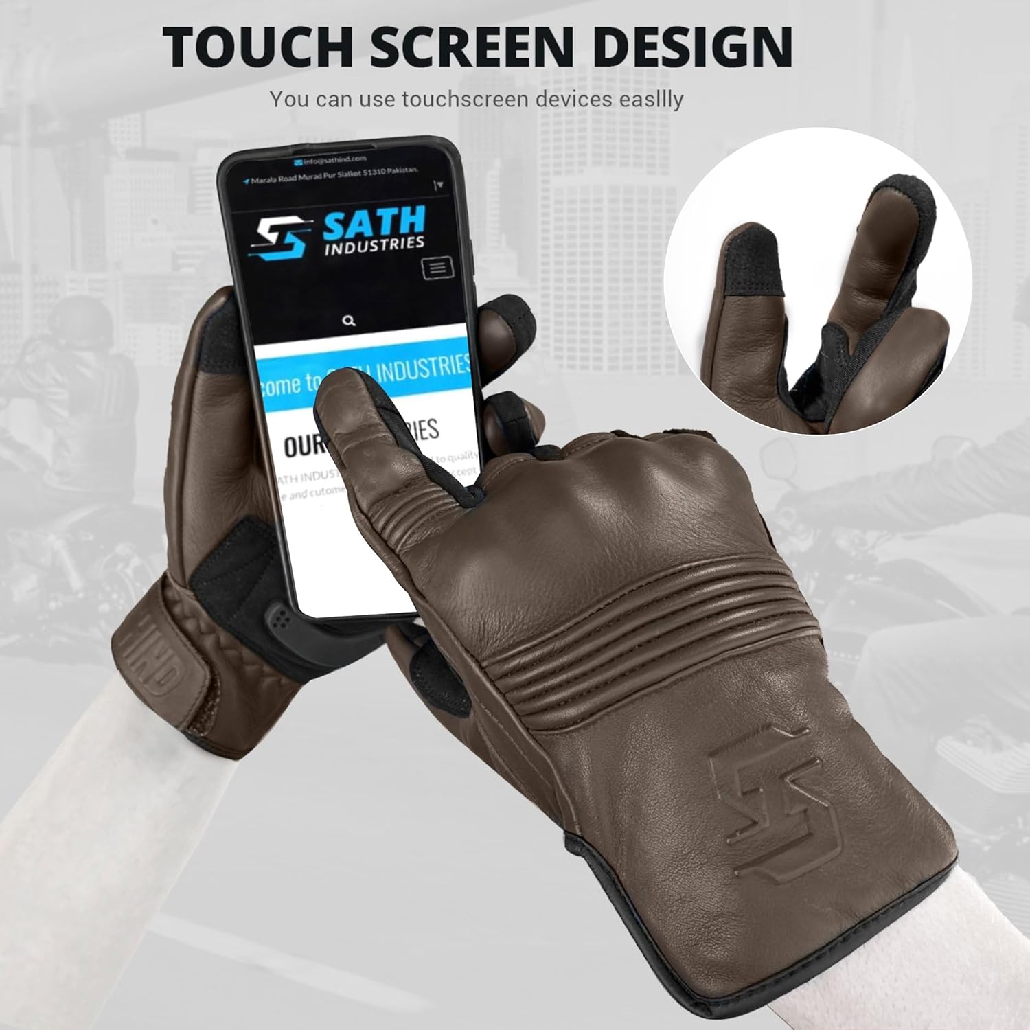 - ✔ ADVANCE PROTECTION: With Professional knuckles, Fingertips, and double leather padding on the side palms provide additional protection against impacts and abrasions. SATHIND motorcycle gloves greatly protect your hands while fast racing. The anti-slip silicone printing on the palm increases the grip on motorcycle handlebars to improve driving safety.