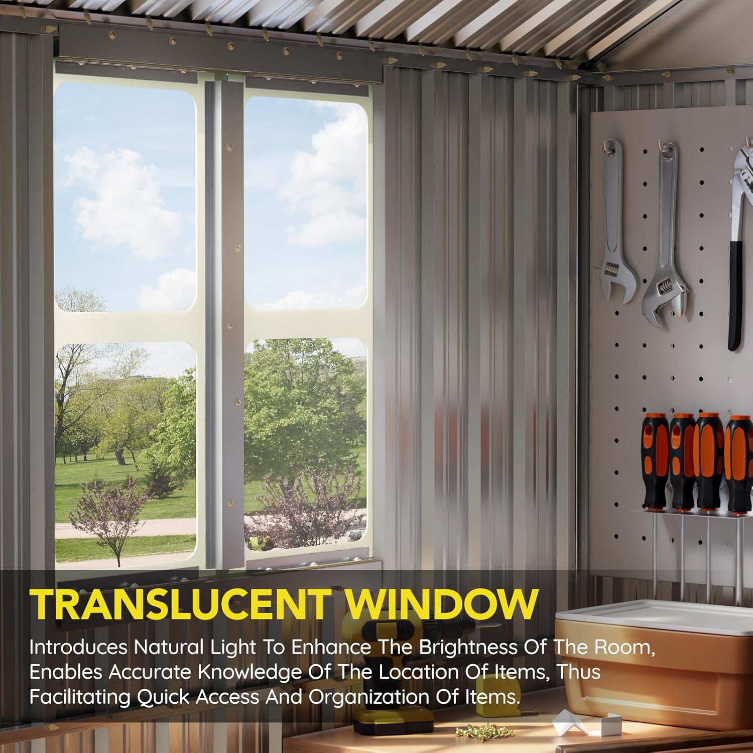 - Durable All-Steel Construction – Made with heavy-duty galvanized steel panels that resist rust, corrosion, and harsh weather conditions for long-lasting performance.