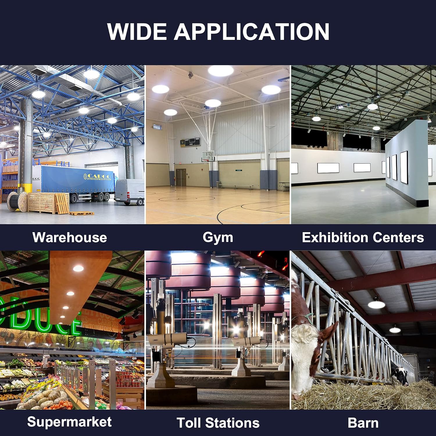 - SOLID & DURABLE: IP65-rated heavy-duty warehouse light is commercial-grade, and their durable properties make it the toughest and most versatile light on the market. The pure aluminum cold-forged housing provides excellent heat dissipation and extends the life of the high bay LED lights