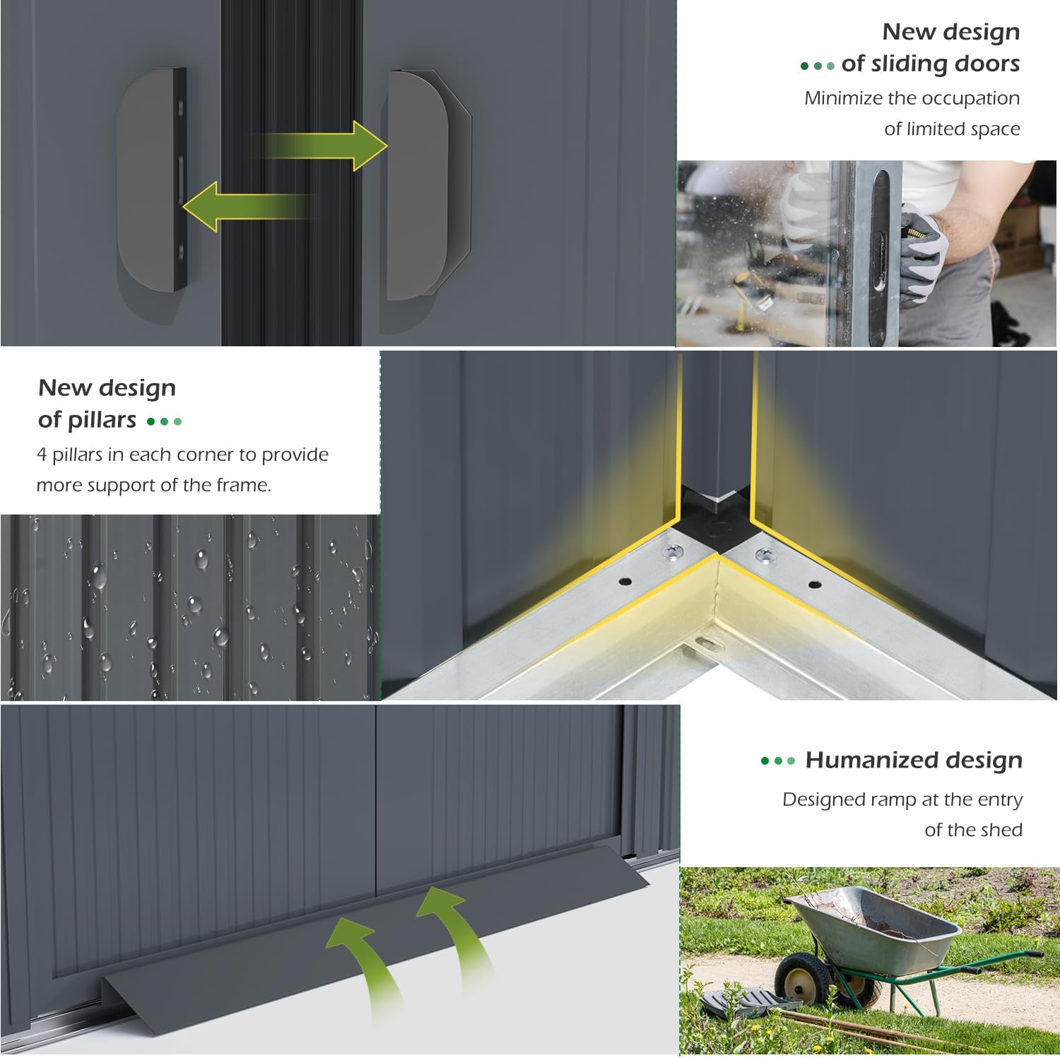AECOJOY 12' x 14' Outdoor Storage Shed with Sliding Door, Outdoor Sheds & Outdoor Storage Clearance Backyard Shed Storage Cabinet, Large 14x12 Metal Storage Tool Shed