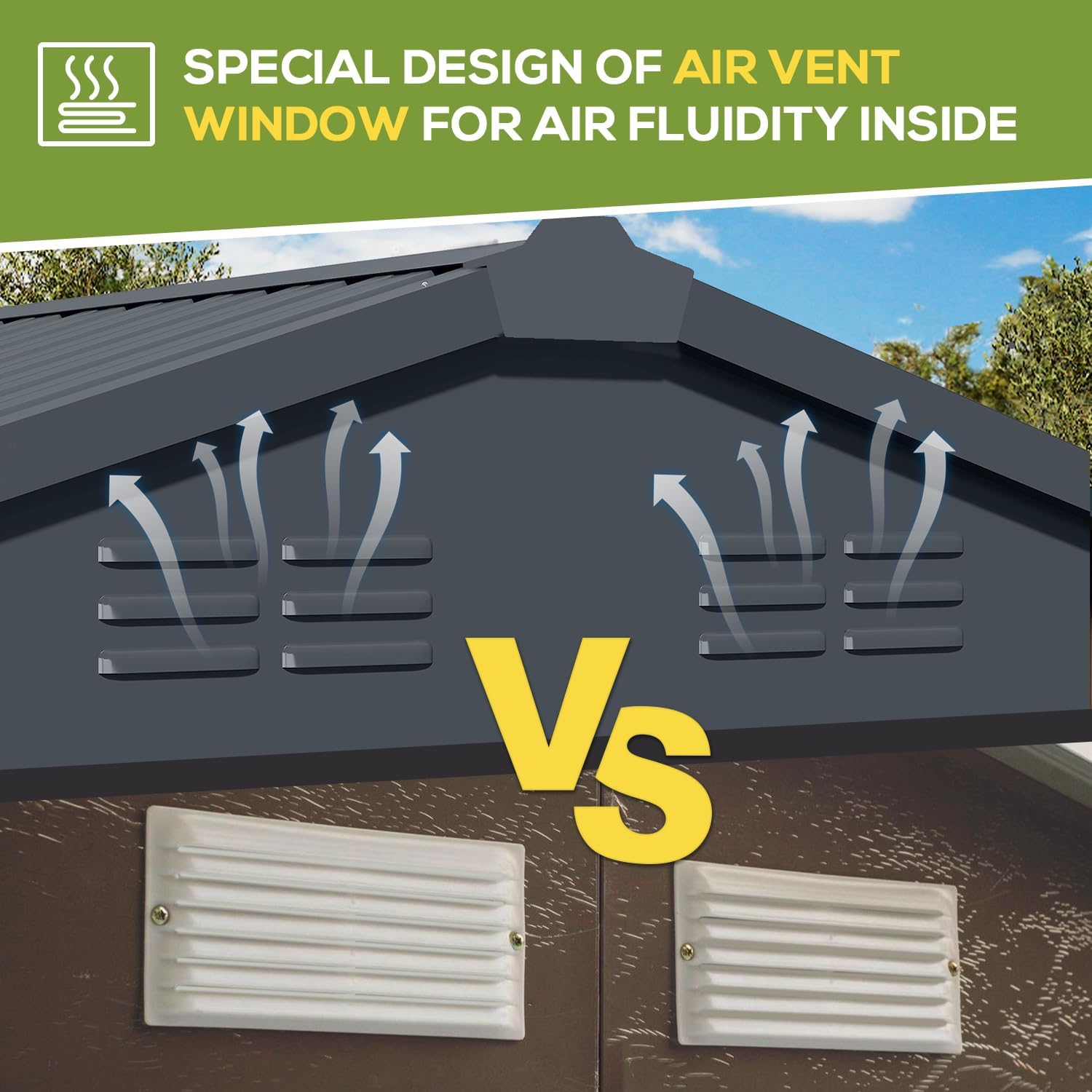 - Robust and Resilient: Enhanced metal plates contribute to the shed's weight of 275 lbs, surpassing cheaper alternatives and significantly reinforcing stability. Withstanding severe weather conditions, it exhibits exceptional wind resistance, reaching approximately 70 mph.