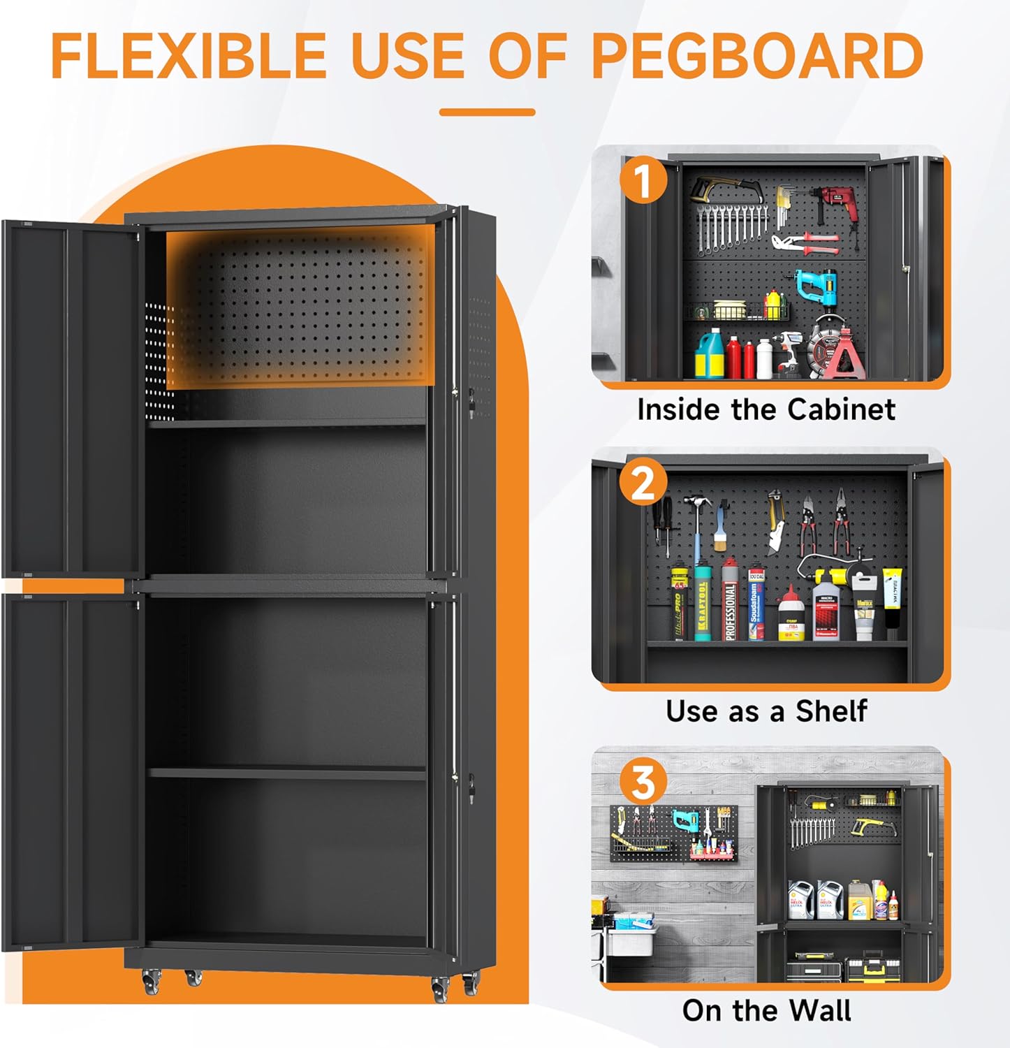 - 🛠️【Ample Storage Space with Customizable Layout】Offering more storage than traditional cabinets, this garage storage cabinet features adjustable and removable shelves, tailored to your specific needs.