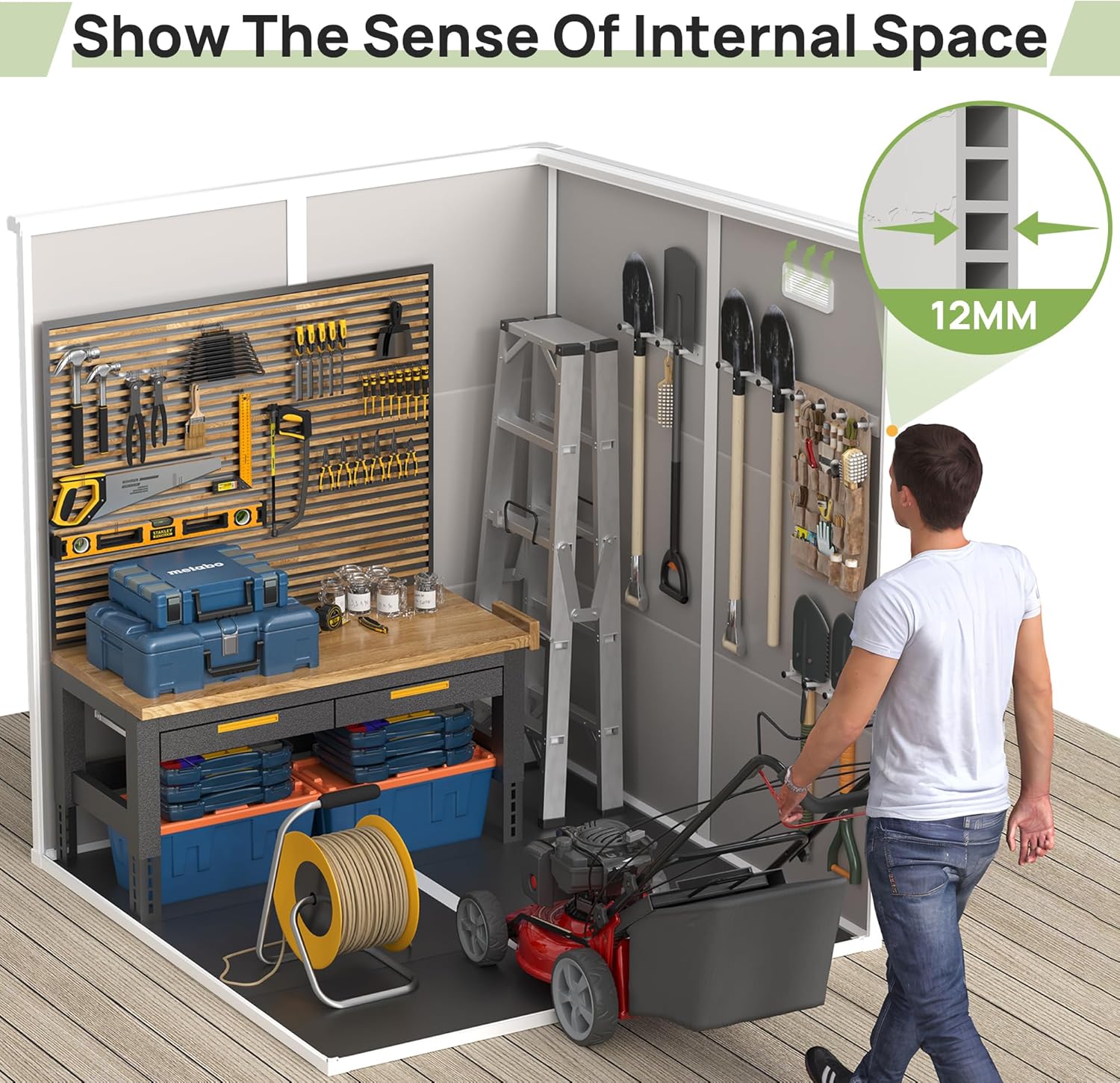 - Double-wall stable design: Tough, double-wall resin construction with impact-resistant floor for long-term durability. The overlapping wall panels are water and moisture resistant for worry-free use in all weather conditions,Weather-resistant, waterproof and UV protected will not peel, rot or rust.(Max Wind resistant grade: 6 (24-30 mph); Maximum snow thickness tolerance: 6 inches)