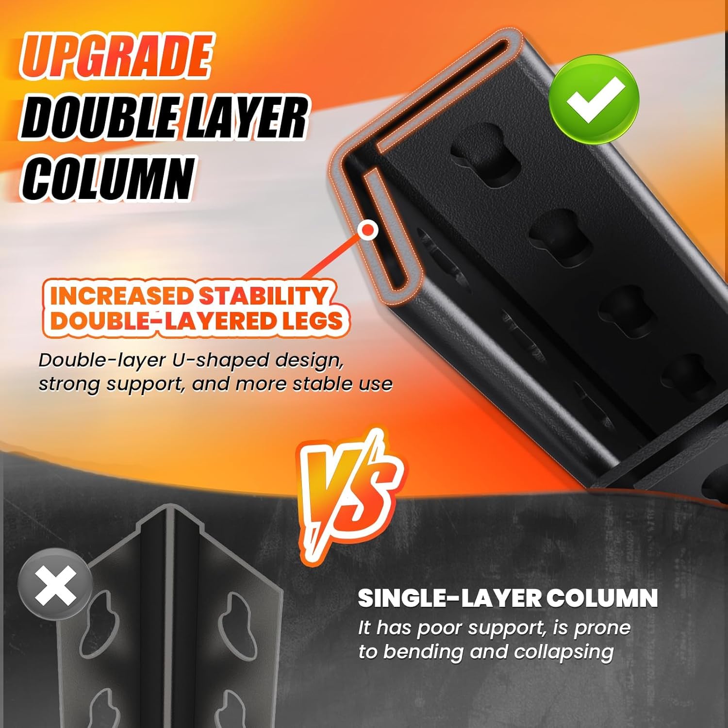 - 【Adjustable Shelves & DIY Flexibility】The garage shelving heights are adjustable in multiple positions, so whether you’re organizing small items or tall equipment, you can tweak the space to maximize storage—great for customizing metal shelves to fit your needs. What’s more, you can split one garage shelf into two separate units, adding versatility that’s perfect for adapting to different spaces, from garage storage shelves for bulky items to garage shelves for smaller tools and accessories.