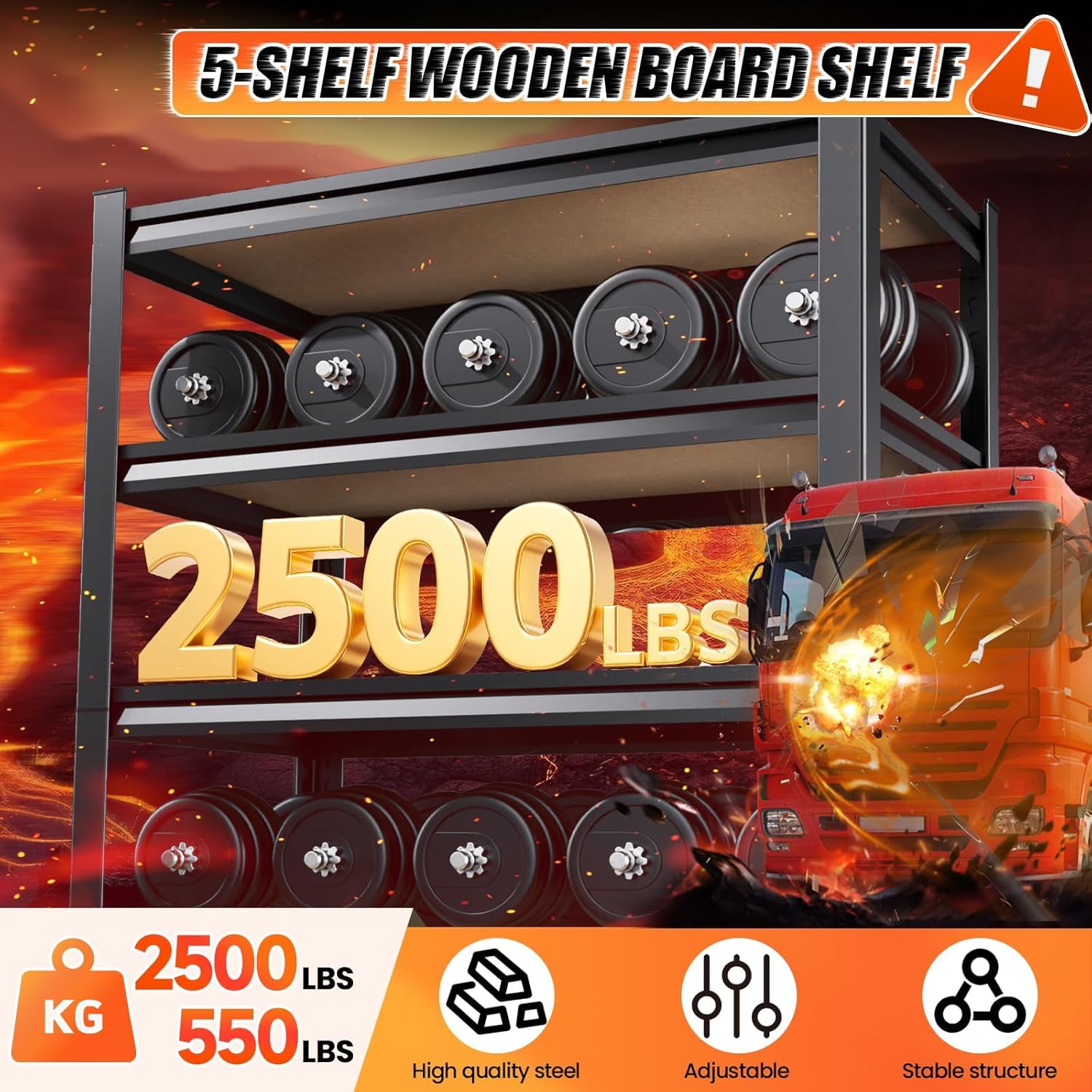 72" H*46'' Storage Shelves 2500lbs Garage Shelving Adjustable Heavy Duty Garage Shelves Easy To Install Metal Shelving Wood Shelving Unit Storage Shelf for Basement Warehouse Industrial Pantry, 2 Pack