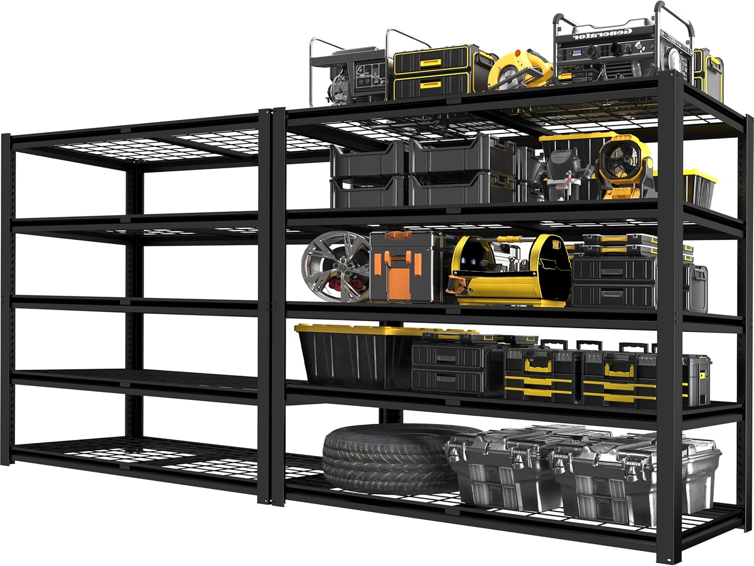 - 【10 Minutes Easy Assembly】The industrial shelving adopts a bolt-free interlocking design and can be quickly assembled in just 10 minutes. It comes with a rubber mallet and gloves to make the installation process simple and efficient. Tips: Evenly distribute the items on each shelf to ensure the stability and load-bearing capacity of the garage shelves